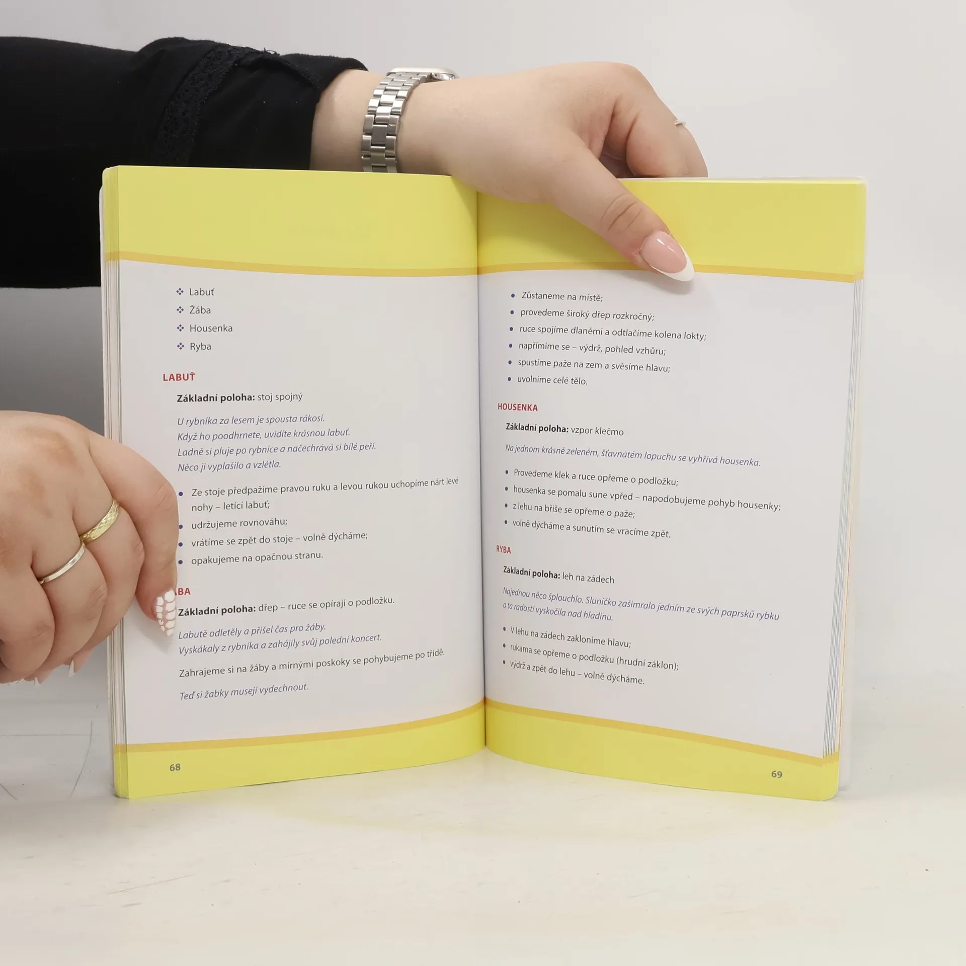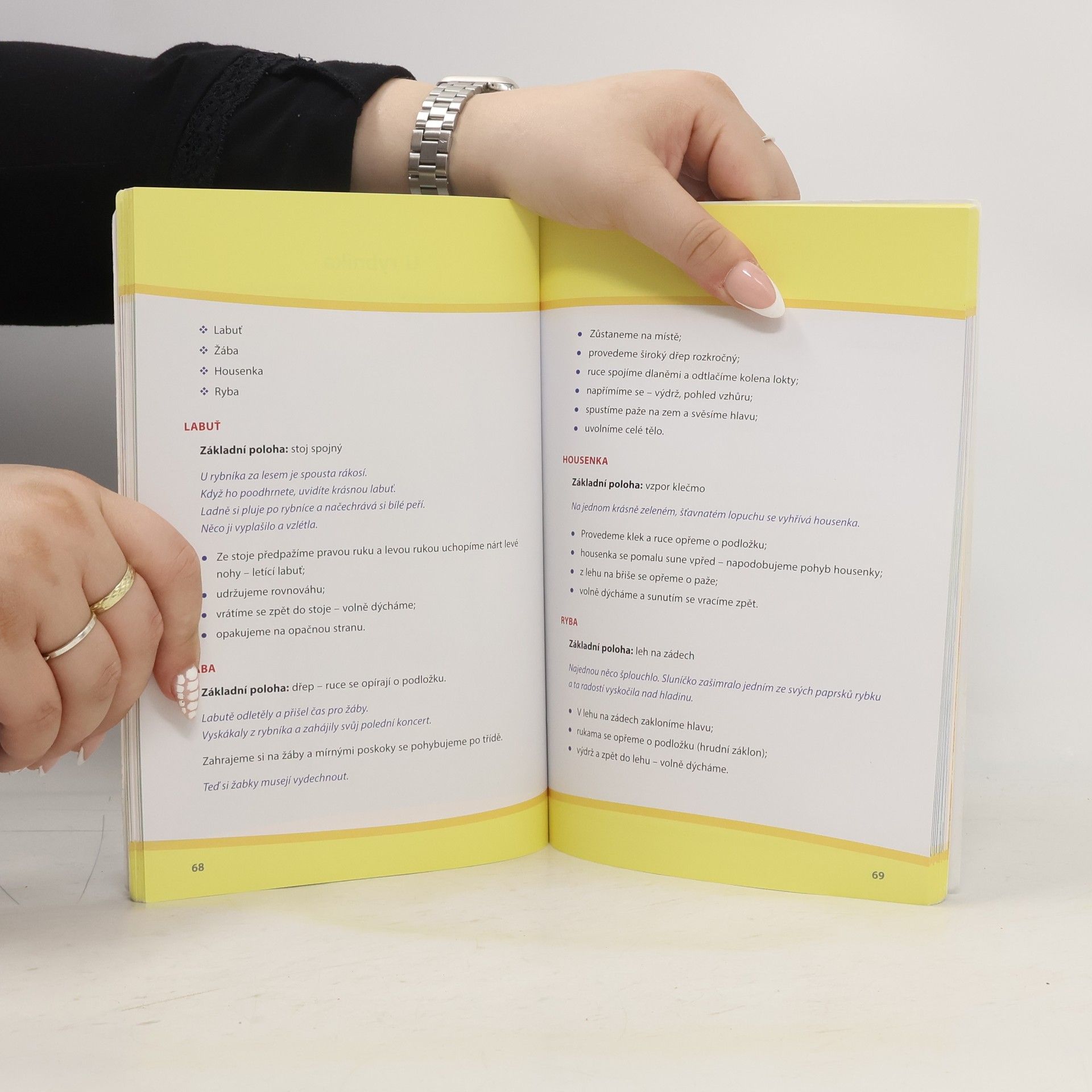 Pohybové hry a aktivity inspirované jógou pro předškolní děti. Knížka představuje soubor her a inspirací pro pohybové aktivity vycházející z jógy a upravené speciálně pro děti předškolního věku. Metodický úvod se věnuje důležitým otázkám rozvoje koordinace pohybu a dechu, rozvoji jemné motoriky pohybu, specifikům, které zohledňujeme při různém věku dětí, vhodné skladbě cvičení, náročnosti, motivaci. V následujících oddílech najdeme různé situace, v nichž cviky, hry a pohybové aktivity můžeme zařadit, a ke každé velké množství konkrétních návodů se stručnými motivačními pasážemi doplněnými obrázky. Motivační obrazy k pohybům a hrám se opírají o jevy ze světa rostlin, zvířat, přírody obecně. Aktivity rozvíjejí pohybové, koordinační dovednosti, rovnováhu v klidu i při pohybu, správné držení těla a správné dýchání, schopnost relaxace. Některé celky jsou určeny pro zklidnění, jiné pro aktivizaci, všechny však spojuje hravost a zábavnost, při kterých si děti ani neuvědomují, že probíhá nějaký řízený program zacílený na rozvoj určitých dovedností.