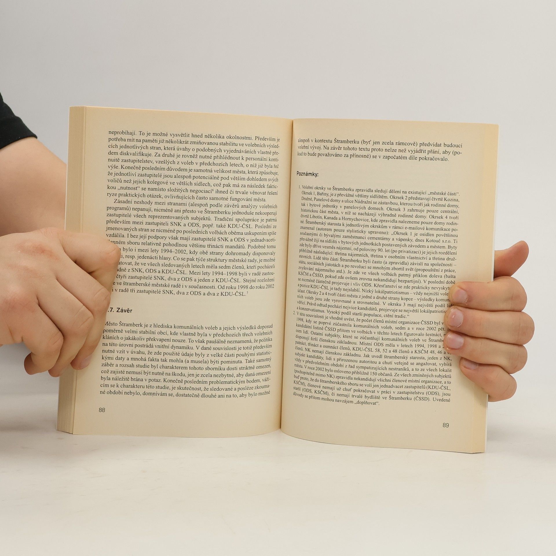 Komunální politika patří k snad nejvíce opomíjeným tématům politické vědy v českých zemích. Její významný aspekt představují volby, jakožto legitimační okamžik politické reprezentace dané obce. Při analýze voleb docházíme k zajímavým otázkám: Co znamená fenomén "nezávislosti" ovládající značnou část nejen české komunální sféry? Je to naděje do budoucna představující kýženou vizi rozhodování "odborného" a nikoli "politického"? Nebo střet dvou "nezávislých" kandidátních listin, představujících reprezentaci divadelních ochotníků a fotbalistů, je leckdy mnohem tvrdší než střet místních organizací ODS a KSČM? Při vědomí obtížnosti zodpovězení uvedených otázek se autoři jednotlivých příspěvků pokusili analyzovat komunální volby v ČR, které proběhly 1. a 2. listopadu 2002. Nejprve je v krátké studii představen vývoj komunálního volebního práva v českých zemích. V další kapitole je čtenář uveden do problematiky současného obecního zřízení. Třetí kapitola se rozsáhle zabývá čtyřmi předchozími komunálními volebními akty. Nejrozsáhlejší příspěvek je věnován celkovým volebním výsledkům komunálních voleb v roce 2002. Následuje blok tří případových studií - Štramberk, Nový Jičín a Brno. V závěrečné kapitole jsou předloženy výsledky práce v oblasti mapování povolebních (radničních) koalic v obcích s rozšířenou působností.