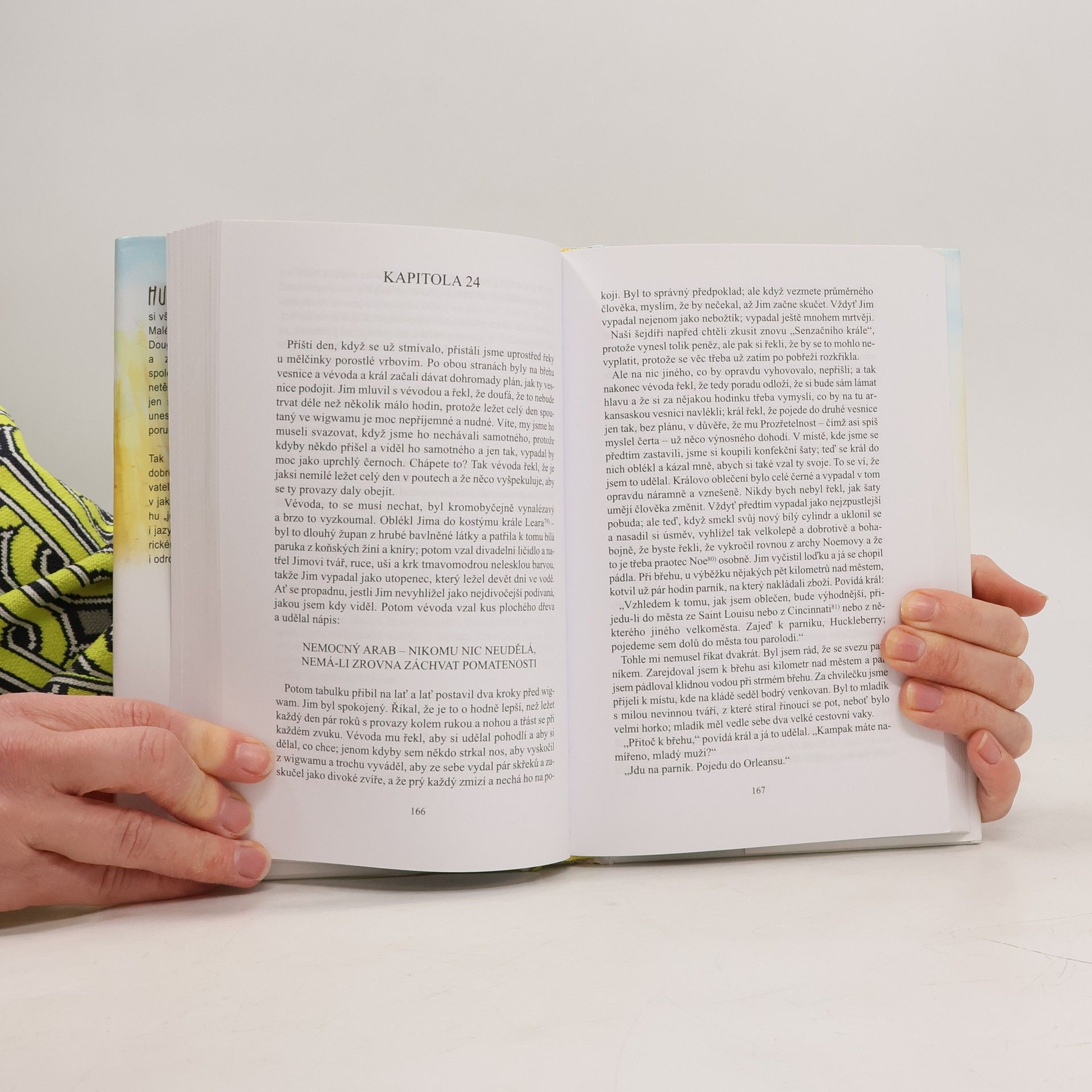 Jeden z klasických humoristických románů, v nichž americký demokratický reportér, redaktor a spisovatel (1835-1910) zachytil pestré příhody svého chlapectví na americkém otrokářském jihu v povodí Mississippi. Román navazuje na "Dobrodružství Toma Sawyera", jehož titulní hrdina je i zde členem "loupežnické tlupy" kluků, které se vdova Douglasová, "ukrutně spořádaná a slušná v každém ohledu", marně snaží "zcibilisovat" Chlapci, plní zdravé dobrodružnosti, prožijí pestré a napínavé příběhy, než se jim podaří pomoci z otroctví černochu Jimovi. Slovní a situační komikou odsoudil spisovatel falešnou romantiku fantastických krváků a satirickou povahokresbou podal kritiku amerického rasismu i výstředností puritánské morálky.