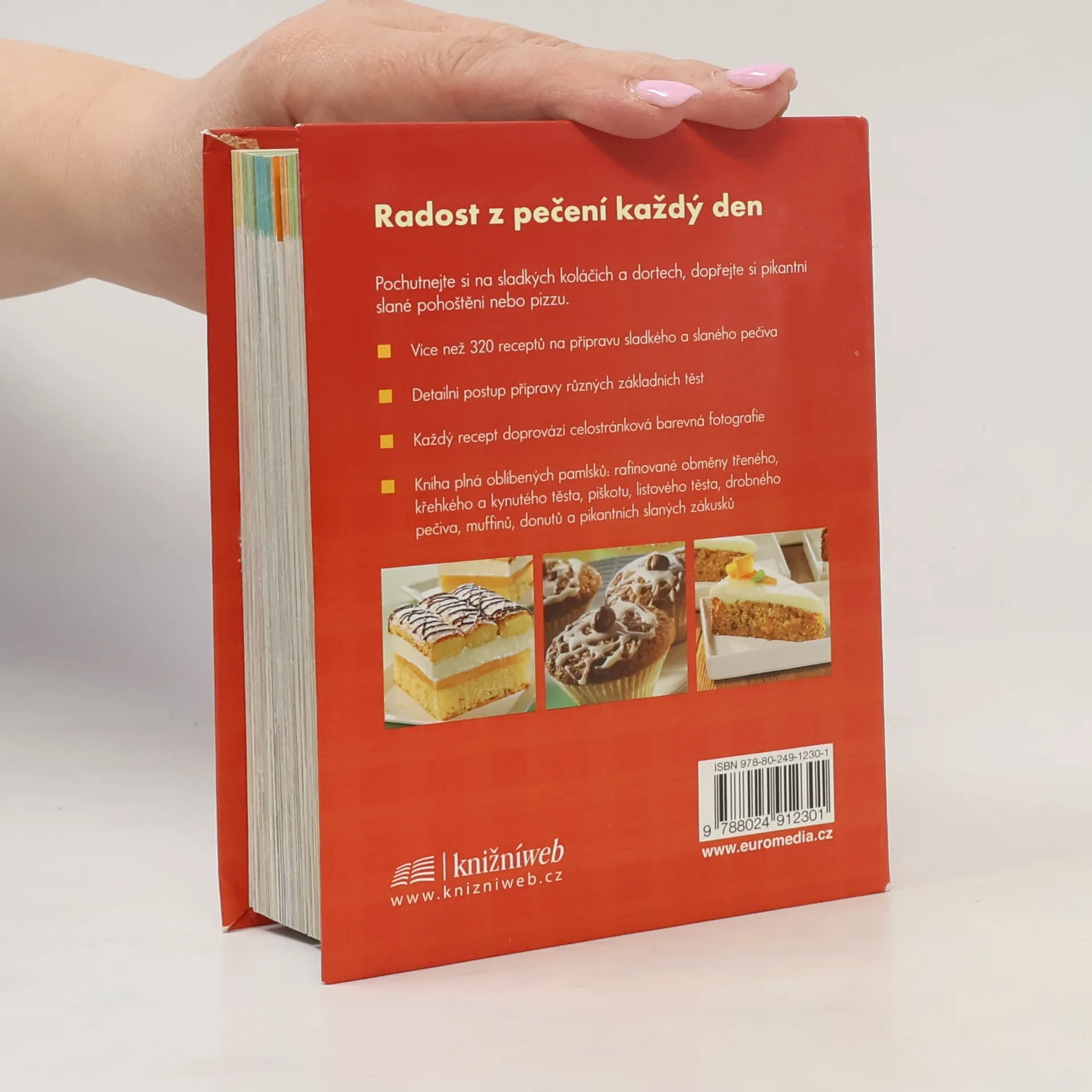 Pochutnejte si na zákuscích, sladkých koláčích a dortech, muffinech, donutech, dopřejte si pikantní slané pohoštění, quiche nebo pizzu. Kniha nabízí více než 320 nejrůznějších receptů sladkého a slaného pečiva, z nichž si vybere každý. Detailní postup přípravy různých základních těst umožní i začátečníkům upéct bohatý sortiment každodenních i svátečních dobrot. Každý recept doprovází celostránková barevná fotografie.