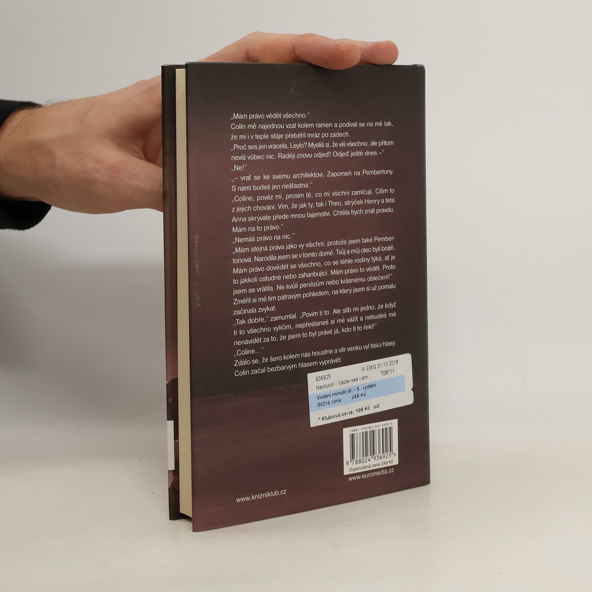 Píše se rok 1857, když se Leyla Pembertonová vrací po smrti matky na rodné sídlo svého rodu. Ačkoliv zde prožila dětství, vůbec nic si z něj nepamatuje, dokonce si nevzpomíná ani na své příbuzné, kteří ji zde přivítají. Ačkoliv se k ní všichni chovají zdvořile, Leyla vycítí, že je to jen přetvářka. I přes tvrdošíjné mlčení obyvatel Pemberton Hurst se pouští do pátrání po vlastní minulosti i domnělém prokletí, které prý na její rodině už po léta ulpívá.