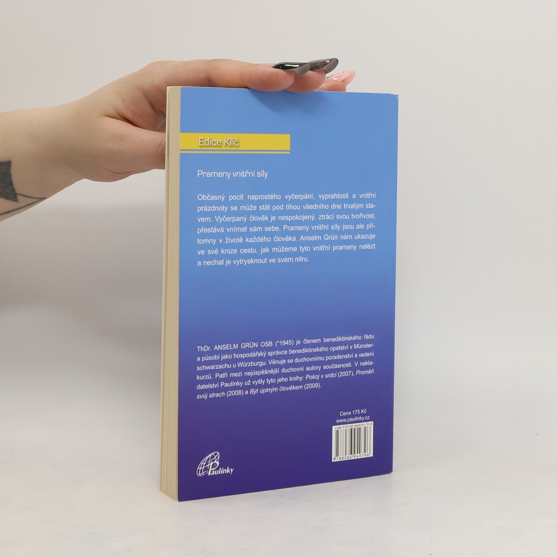 Podtitul: Jak se vyhnout vyčerpání Občasný pocit naprostého vyčerpání, vyprahlosti a vnitřní prázdnoty se může stát pod tíhou všedního dne trvalým stavem. Vyčerpaný člověk je nespokojený, ztrácí svou tvořivost, přestává vnímat sám sebe. Prameny vnitřní síly jsou ale přítomny v životě každého člověka. Anselm Grün nám ukazuje ve své knize cestu, jak můžeme tyto vnitřní prameny nalézt a nechat je vytrysknout ve svém nitru.