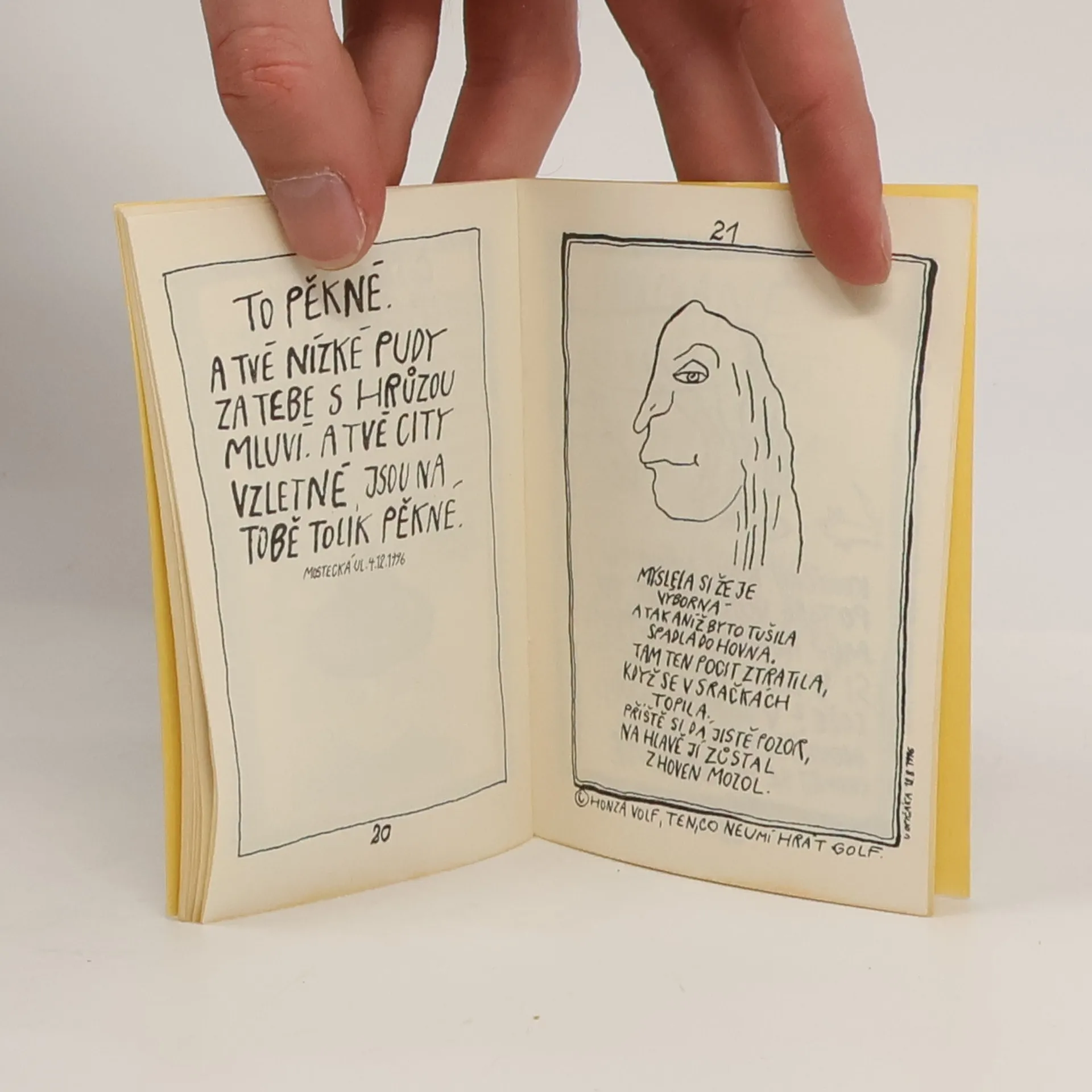 Osobité črty pocitů, vzpomínek, lásek s doprovodnými obrázky autora.