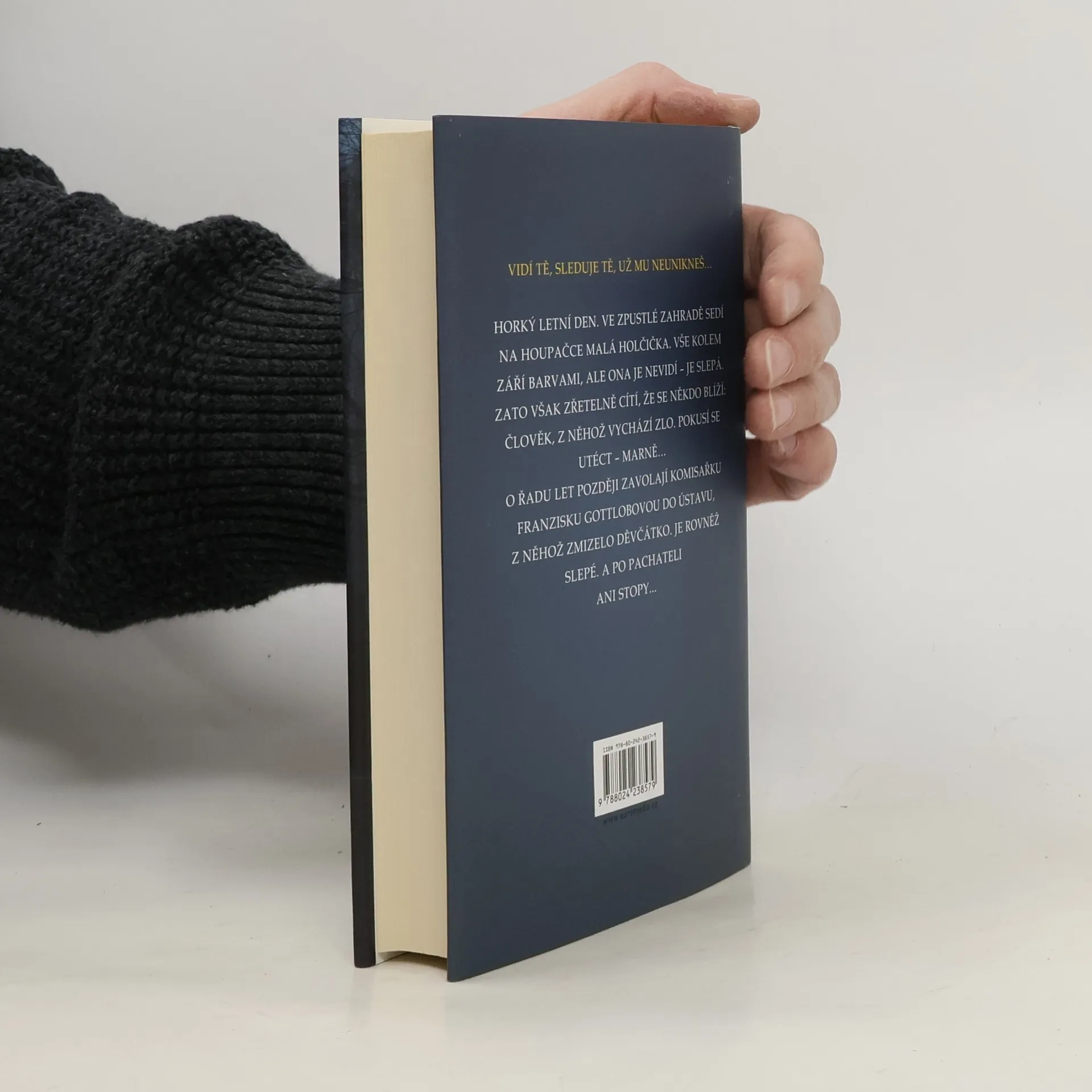 Horký letní den. Ve zpustlé zahradě sedí na houpačce malá dívenka. Vše kolem září barvami, ale ona je nevidí – je slepá. Zato však zřetelně cítí, že se někdo blíží: člověk, z něhož vychází zlo. Pokusí se utéct – marně… O řadu let později zavolají komisařku Franzisku Gottlobovou do ústavu, z něhož zmizelo děvčátko. Je rovněž slepé. A po pachateli ani stopy...