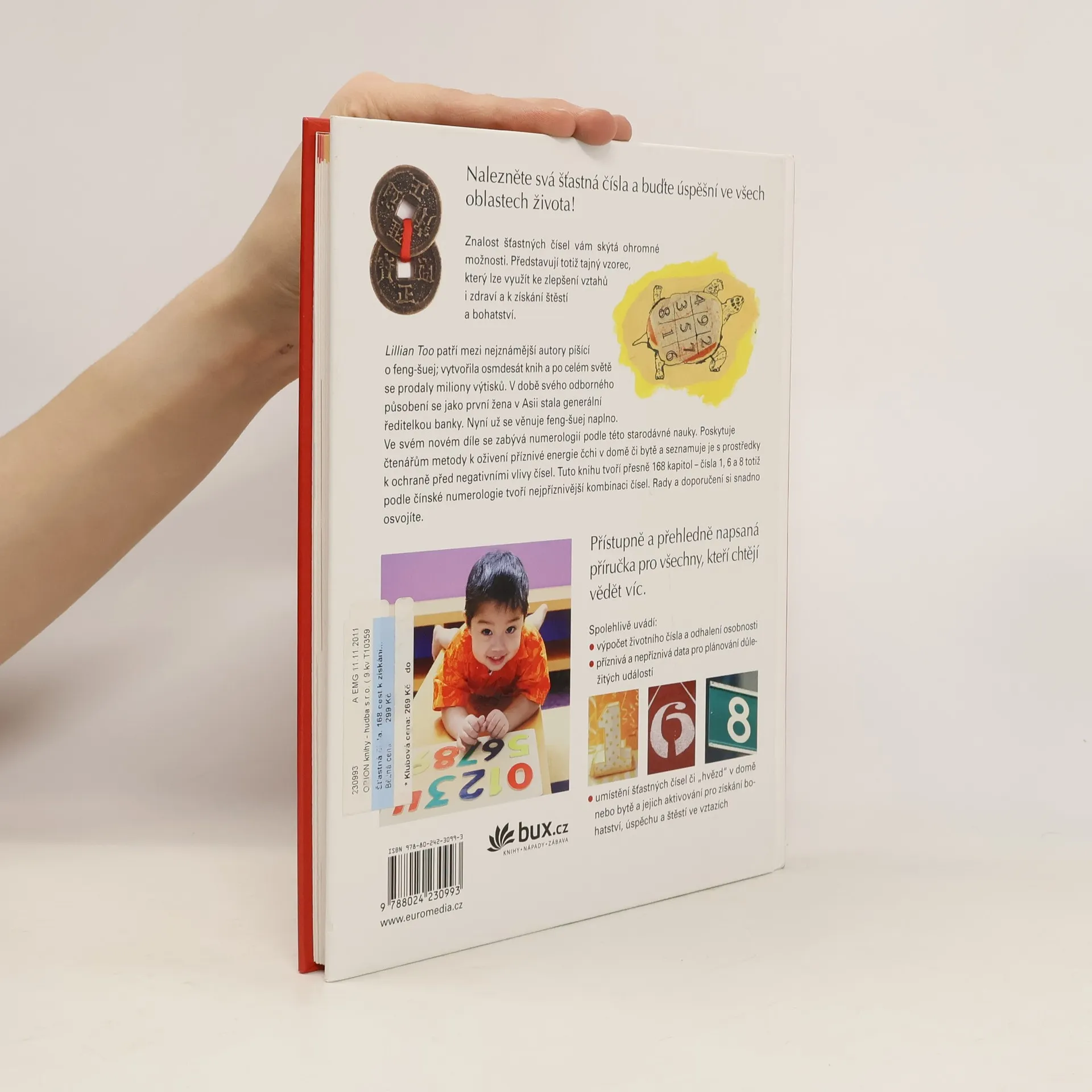 Lillian Too, která patří mezi nejznámější autory knih o feng-šuej, se ve svém novém díle zabývá numerologií podle této starodávné čínské nauky. Odhaluje tajemství skrývající se v životním čísle i v čísle jména, poskytuje čtenářům metody k oživení příznivé energie čchi v domě či bytě a seznamuje je s prostředky k ochraně před negativními vlivy čísel. Přístupně a přehledně napsaná příručka prospěje všem, kteří chtějí v životě získat bohatství, úspěch a štěstí.