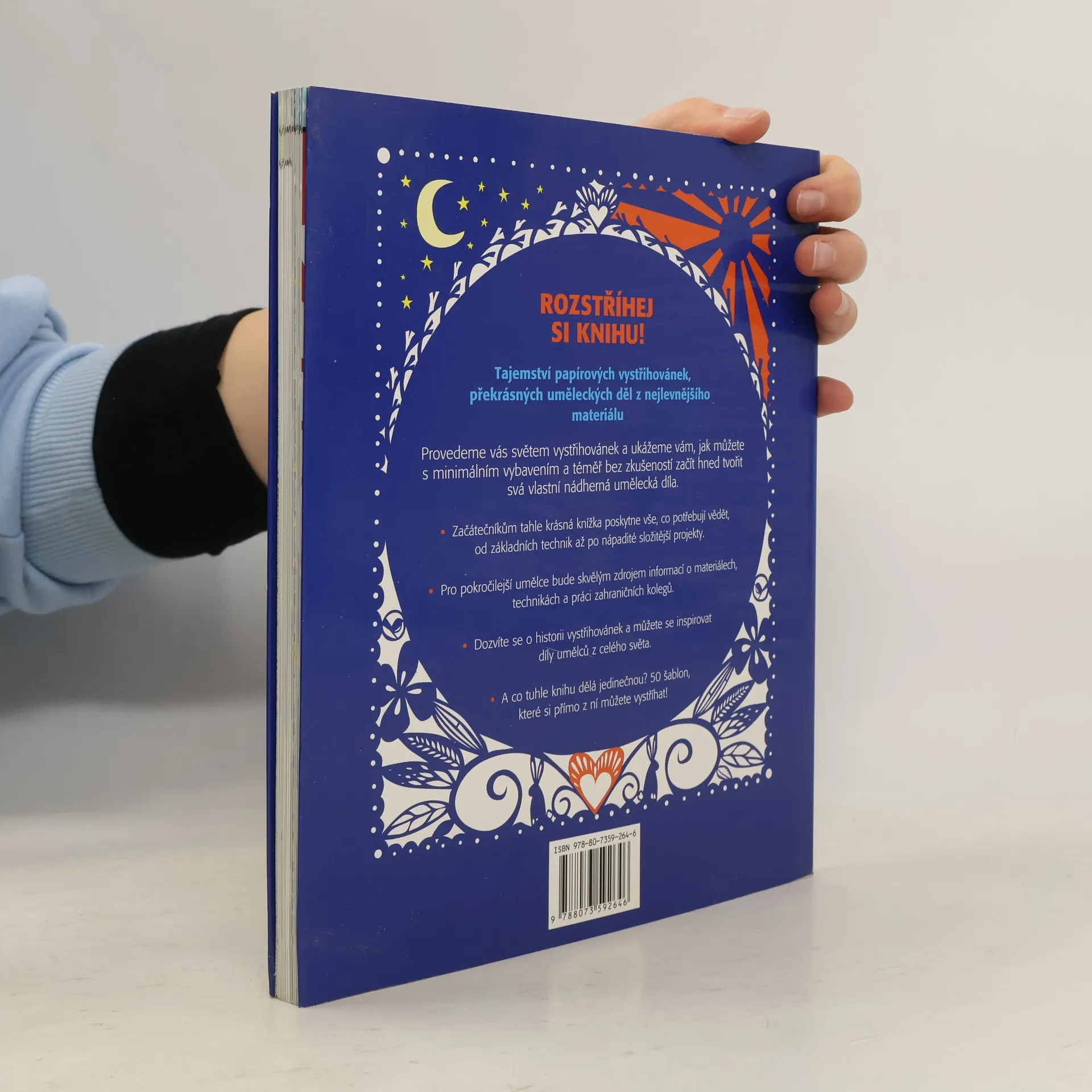 Tajemství papírových vystřihovánek, překrásných uměleckých děl z nejlevnějšího materiálu… Tato krásná kniha vás provede světem vystřihovánek a ukáže vám, jak můžete s minimálním vybavením a téměř bez zkušeností začít hned tvořit svá vlastní nádherná umělecká díla. Začátečníkům tahle knížka poskytne vše, co potřebují vědět, od základních technik až po nápadité složitější projekty. Pro pokročilejší umělce bude skvělým zdrojem informací o materiálech, technikách a práci zahraničních kolegů. Dozvíte se o historii vystřihovánek a můžete se inspirovat díly umělců z celého světa. A co tuhle knížku dělá jedinečnou? 50 šablon, které si přímo z ní můžete vystříhat!