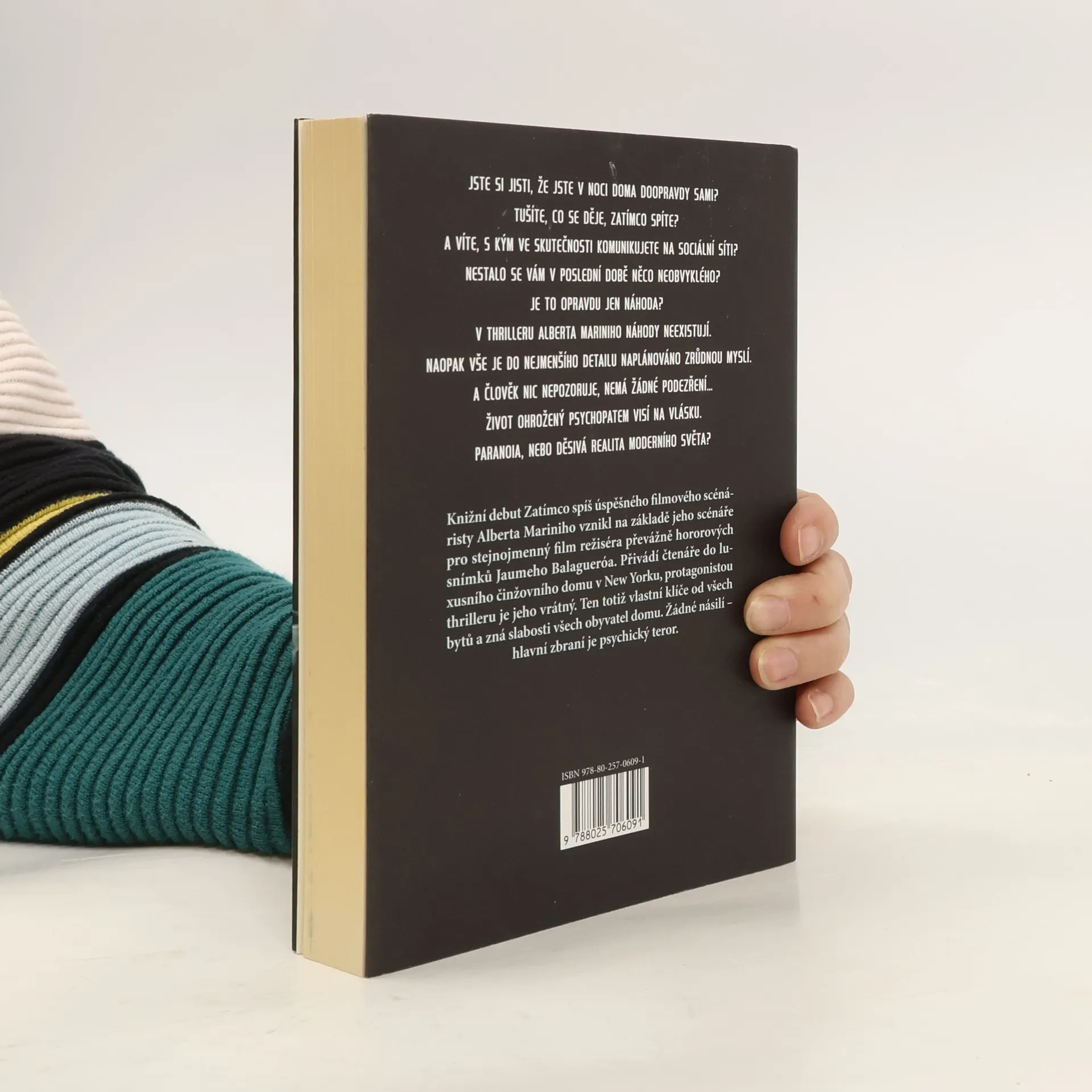 Knižní debut Zatímco spíš úspěšného filmového scénáristy Alberta Mariniho vznikl na základě jeho scénáře pro stejnojmenný film režiséra převážně hororových snímků Jaumeho Balagueróa. Přivádí čtenáře do luxusního činžovního domu v New Yorku, protagonistou thrilleru je jeho vrátný. Ten totiž vlastní klíče od všech bytů a zná slabosti všech obyvatel domu. Stačí jich jen využít. Žádné násilí – hlavní zbraní je psychický teror.