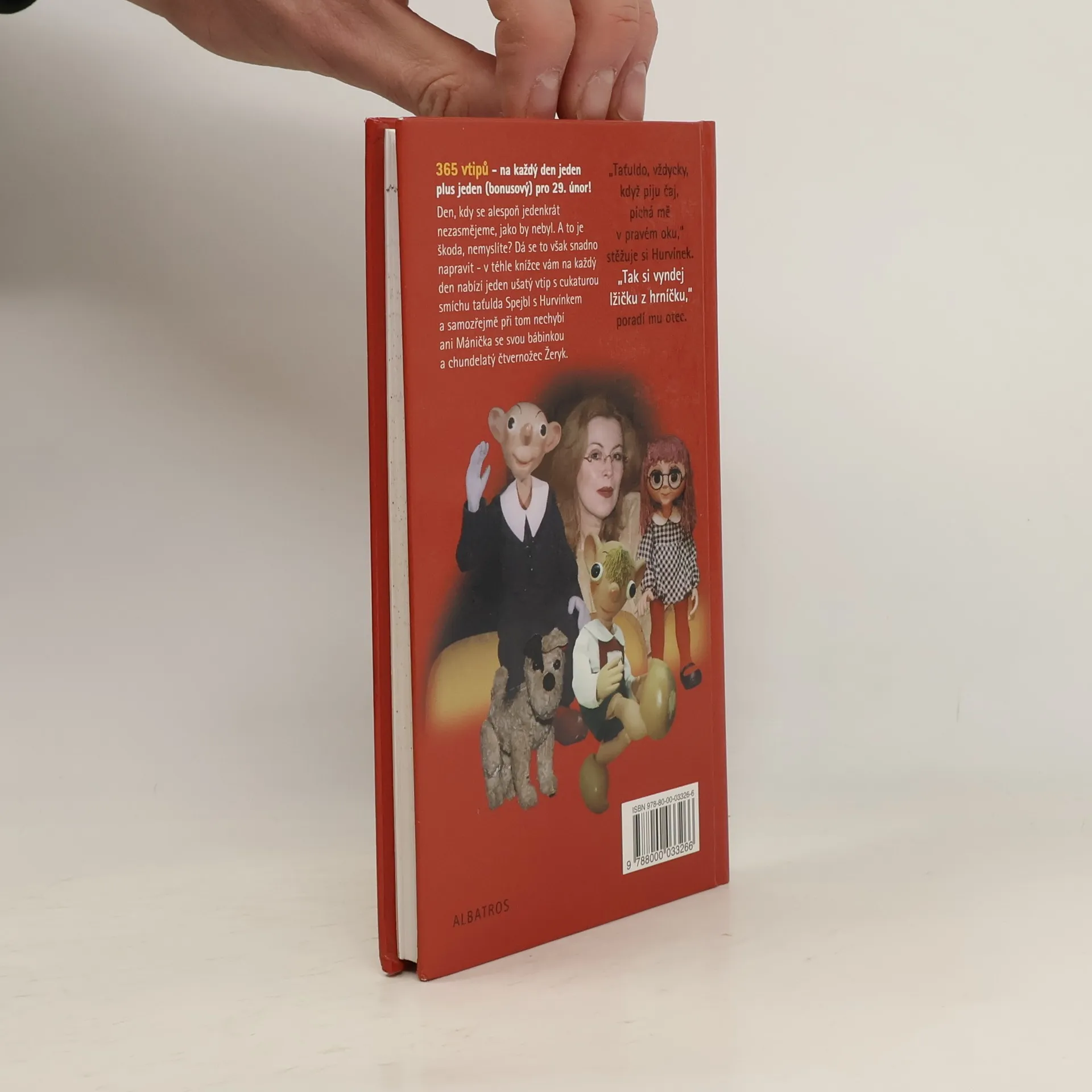 Den, kdy se alespoň jedenkrát nezasmějeme, jako by nebyl. A to je škoda, nemyslíte? Dá se to však snadno napravit – v téhle knížce vám na každý den nabízí jeden ušatý vtip s cukaturou smíchu taťulda Spejbl s Hurvínkem a samozřejmě při tom nechybí ani Mánička se svou bábinkou a chundelatý čtvernožec Žeryk. Doplněno krátkou historii Divadla S+H napsanou dnes nejpovolanější osobou – Helenou Štáchovou.