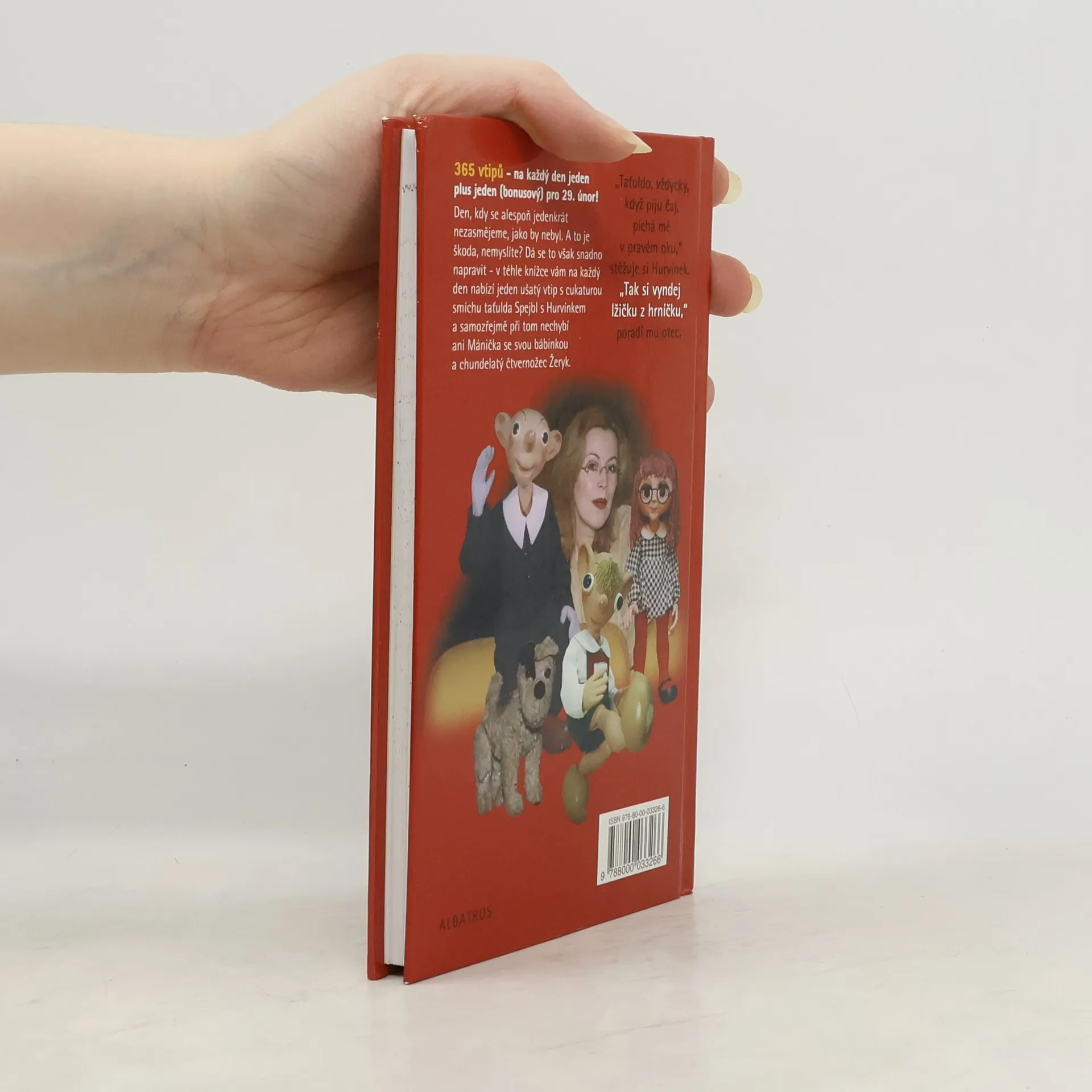 Den, kdy se alespoň jedenkrát nezasmějeme, jako by nebyl. A to je škoda, nemyslíte? Dá se to však snadno napravit – v téhle knížce vám na každý den nabízí jeden ušatý vtip s cukaturou smíchu taťulda Spejbl s Hurvínkem a samozřejmě při tom nechybí ani Mánička se svou bábinkou a chundelatý čtvernožec Žeryk. Doplněno krátkou historii Divadla S+H napsanou dnes nejpovolanější osobou – Helenou Štáchovou.