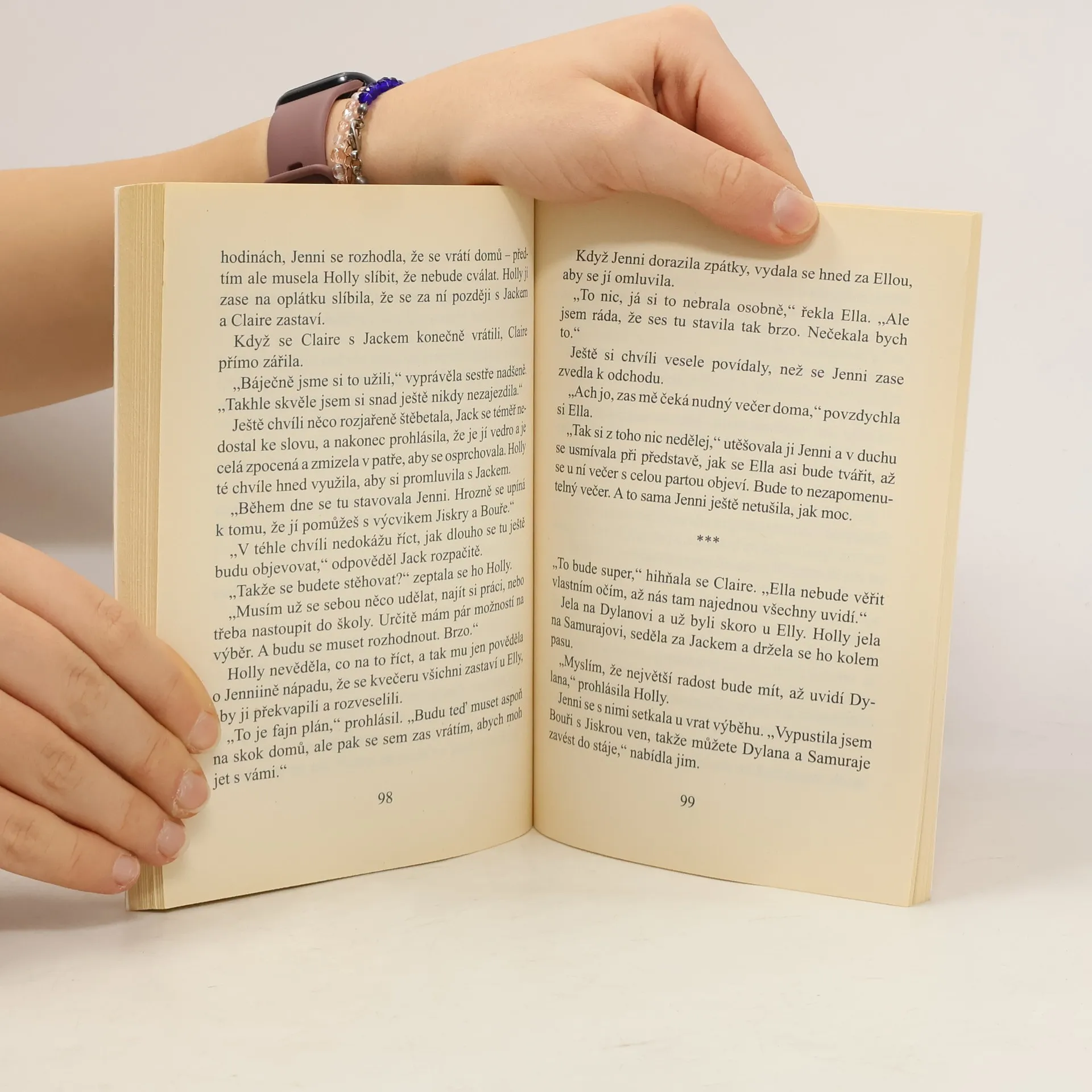 A potom to uviděla. K rozsoše sedla byla přivázaná černá plastová taška. Ať už ji tam dal kdokoliv, rozhodně chtěl, aby ji Holly našla. A ten někdo to s koňmi musel náramně umět, když aninevyplašil Samuraje. Opatrně tašku odvázala a začala ji pomalu a ostražitě otevírat - přemítala, co v ní pro všechno na světě může být. Rozechvěle a s třesoucíma se rukama do tašky nahlédla. Byla v ní nějaká kniha. Malá knížka s odrbanými rohy a deskami potaženými vybledlým fialovým plátnem. Strčila dovnitř ruku a knížku vytáhla. Se zatajeným dechem ji otevřela na první stránce. „Ach Samuraji. To je deník. Dianin deník.“ Když se Jenni ujme nádherných klisen Jiskry a Bouře, je přesvědčená, že jsou prostě dokonalé. Ale její kamarádky Ella a Holly si tím tak jisté nejsou, a když pak jeden z koní Ellu zraní, dívky se začnou zajímat o minulost záhadných plnokrevníků a důvod jejich podivného chování. Holly objeví ukrytý deník a v něm se dozví o hrozné tragédii – a čekají ji další temná tajemství… Brzy pochopí, že její sestra Claire a kamarádka Jenni jsou v hrozném nebezpečí – a musí svést souboj s časem, aby je zachránila. Když se zdá, že je už všechno ztraceno, objeví se nečekaně přítel, s jehož pomocí již nikdo nepočítal… Volně navazuje na knihu „Kůň na balkóně“. Zdroj anotace a obrázku www.pennygirl.cz/