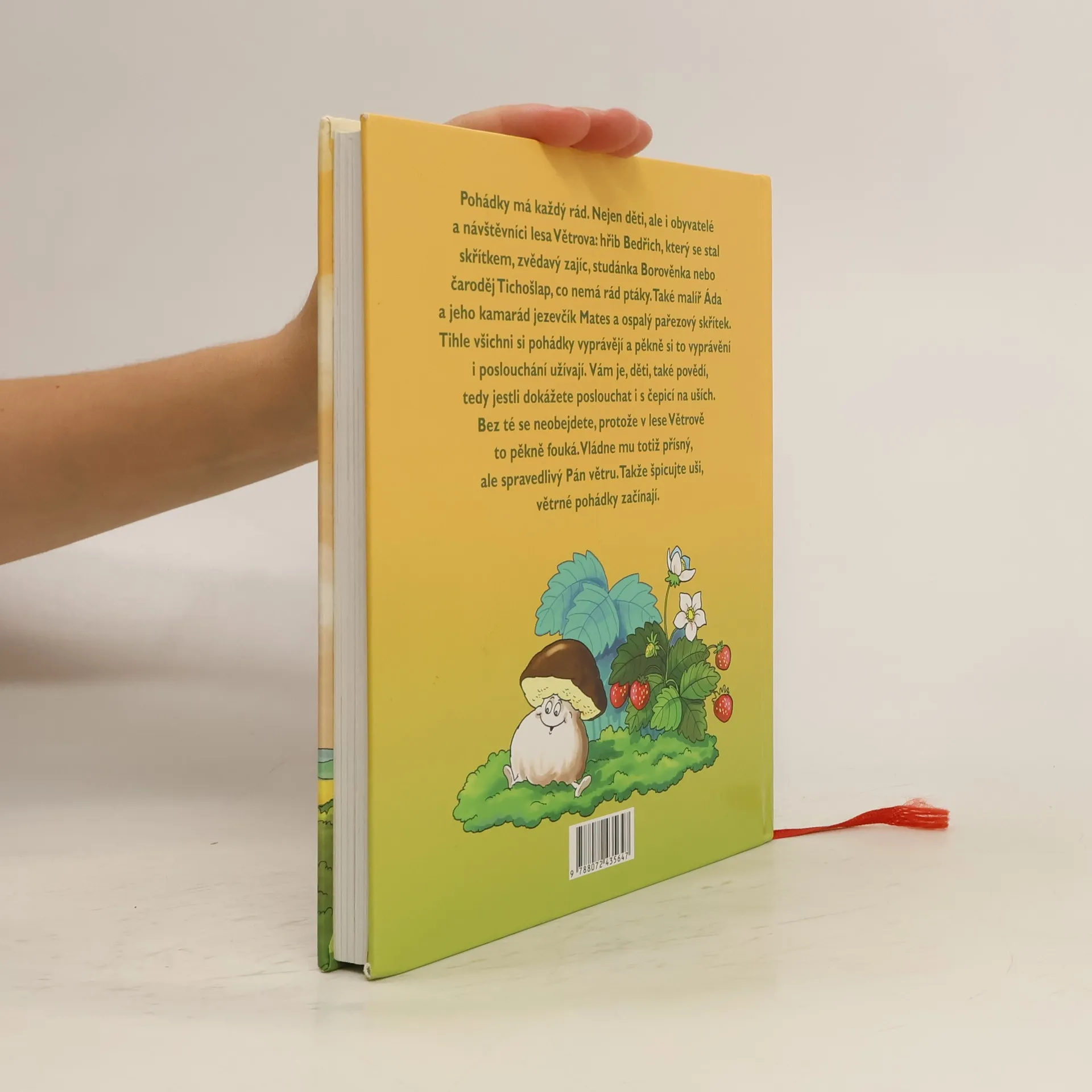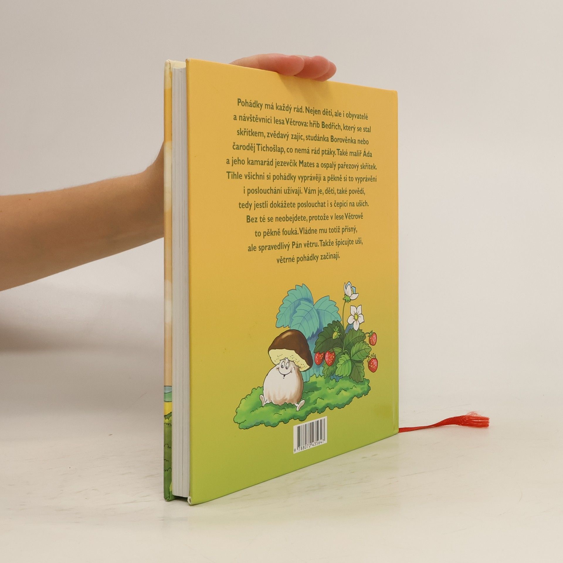 Pohádky má každý rád. Nejen děti, ale i obyvatelé a návštěvníci lesa Větrova: hřib Bedřich, který se stal skřítkem, zvědavý zajíc, studánka Borověnka nebo čaroděj Tichošlap, který nemá rád ptáky. A také malíř Áda, jeho kamarád jezevčík Mates a ospalý pařezový skřítek. Tihle všichni si pohádky vyprávějí a to vyprávění i poslouchání si pěkně užívají. Vám je, děti, také povědí, tedy pokud dokážete poslouchat i s čepicí na uších. Bez té se neobejdete, protože v lese Větrově to pěkně fouká. Vládne mu totiž přísný, ale spravedlivý Pán větru. Takže špicujte uši, větrné pohádky začínají…