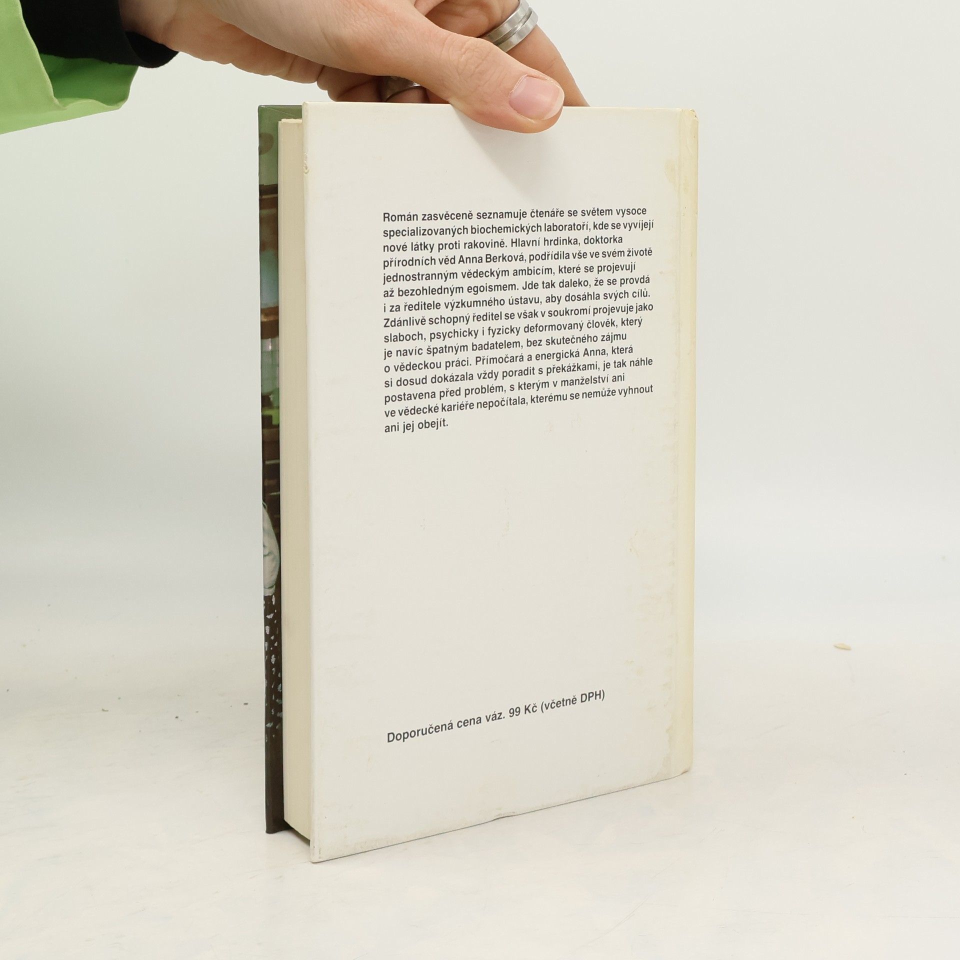 Román zavede čtenáře do světa vysoce specializovaných biochemických laboratoří, na půdu univerzit i na mezinárodní vědecké kongresy. Hrdinkou napínavého psychologického románu je ambiciózní vědecká pracovnice, která se blíží k světovému úspěchu v biochemickém výzkumu, zaměřeném také na vývoj nových léků proti rakovině. Doktorka přírodních věd Anna Berková je mimořádně inteligentní, činorodá, ve svém profesionálním zaujetí k okolí i bezohledná mladá žena, vzbuzující svými jednostrannými zájmy a egoismem někdy až antipatii. Naopak v citových vztazích je její duše již od dětství snadno zranitelná a Anně dlouho trvá, než se rozhodne vstoupit do manželství s ředitelem výzkumného ústavu, ve kterém pracuje. Její manžel se však projeví jako slaboch, kterého závist a komplexy dovedou až k absurdnímu morálnímu selhání. Přímočará a energická Anna si dosud vždy dokázala poradit se všemi překážkami, ve svém manželství však nyní stojí před problémem, který neumí vyřešit ani se mu nedokáže vyhnout. Manželské drama se rozvíjí v psychologicky napínavý příběh o složitosti citů, železné vůli a chladnokrevné odvaze jedné výjimečné ženy. Součástí tohoto 2. vydání je i předmluva pana Jana Škody, který se Zdenou Frýbovou řadu let spolupracoval právě na sérii obsáhlých odborných dialogů věnovaných pokrokům biochemie, biotechnologie a genového inženýrství.