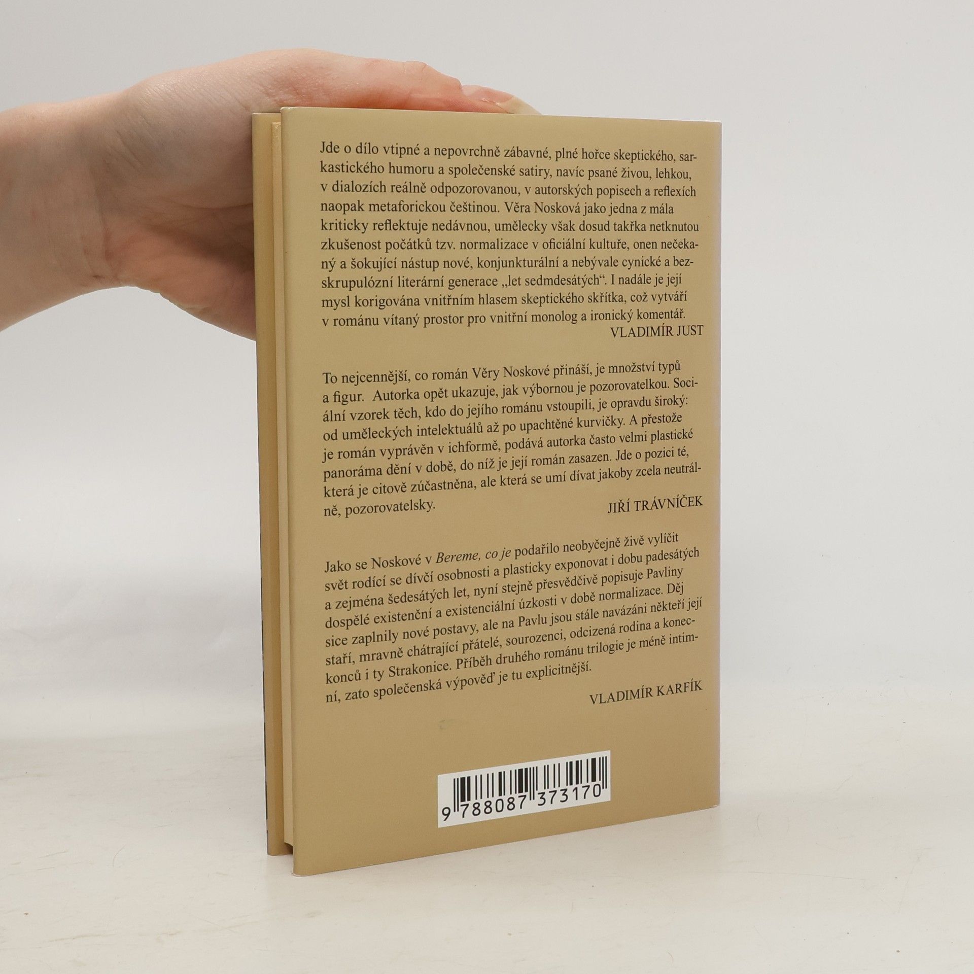 Volné pokračování úspěšného románu Bereme, co je nás spolu s dospělou hrdinkou Pavlou přenese z maloměsta padesátých a šedesátých let do Prahy, která je jako celé Československo „dočasně“ obsazená okupačními vojáky - a v přeneseném smyslu také normalizačními pragmatiky. Dobu relativního režimního i kulturního uvolnění vystřídala éra lámání charakterů. Protože se Pavla přátelí s básníky, hudebníky a výtvarníky, provede nás autorka v této knize Prahou bohémskou, ale kromě toho i městem obskurních podnájmů, číšníků, servírek a levných kurviček, Prahou, jejíž kdysi zdobné fasády šednou a začínají opadávat. Jde o to, zda za daných okolností může ve vysněném velkoměstě najít domov a svobodu, jak o tom snila. Věra Nosková se v druhém díle trilogie Obsazeno, navazujícím na strhujícího románu Bereme, co je vrací do let, která nadlouho změnila životy mnoha slušných lidí. Tak jako v předchozí knize popisuje realitu doby poznamenanou všudypřítomným marasmem, s nímž se utkává potřeba mládí žít naplno, svobodně a láskou.