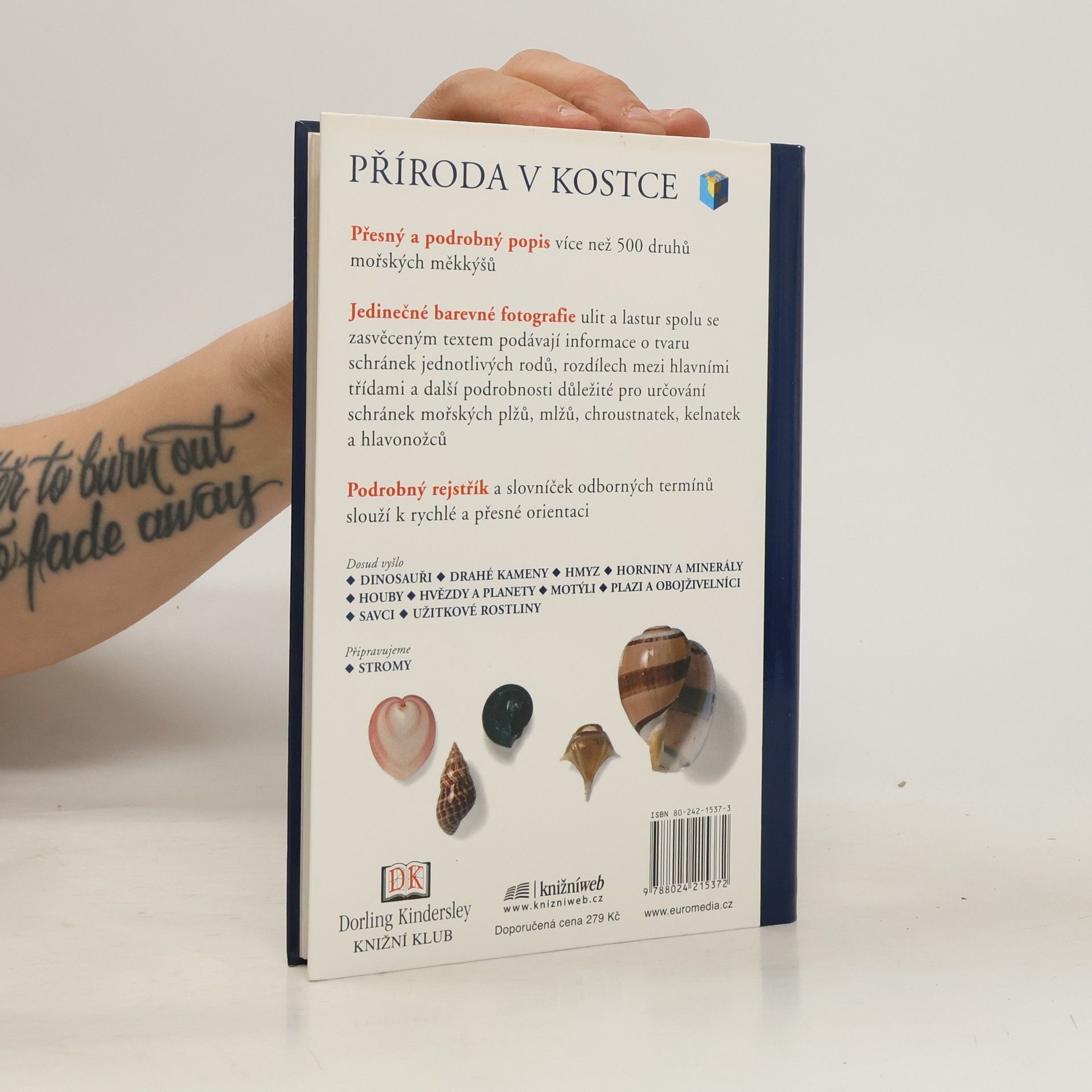 Příroda v kostce Přesný a podrobný popis více než 500 druhů mořských měkkýšů Jediněčné barevné fotografie ulit a lastur spolu se zasvěceným textem podávají informace o tvaru schránek jednotlivých rodů, rozdílech mezi hlavními třídami a další podrobnosti důležité pro určování schránek mořských plžů, mlžů, chroustnatek, kelnatek a hlavonožců Podrobný rejstřík a slovníček odborných termínů slouží k rychlé a přesné orientaci