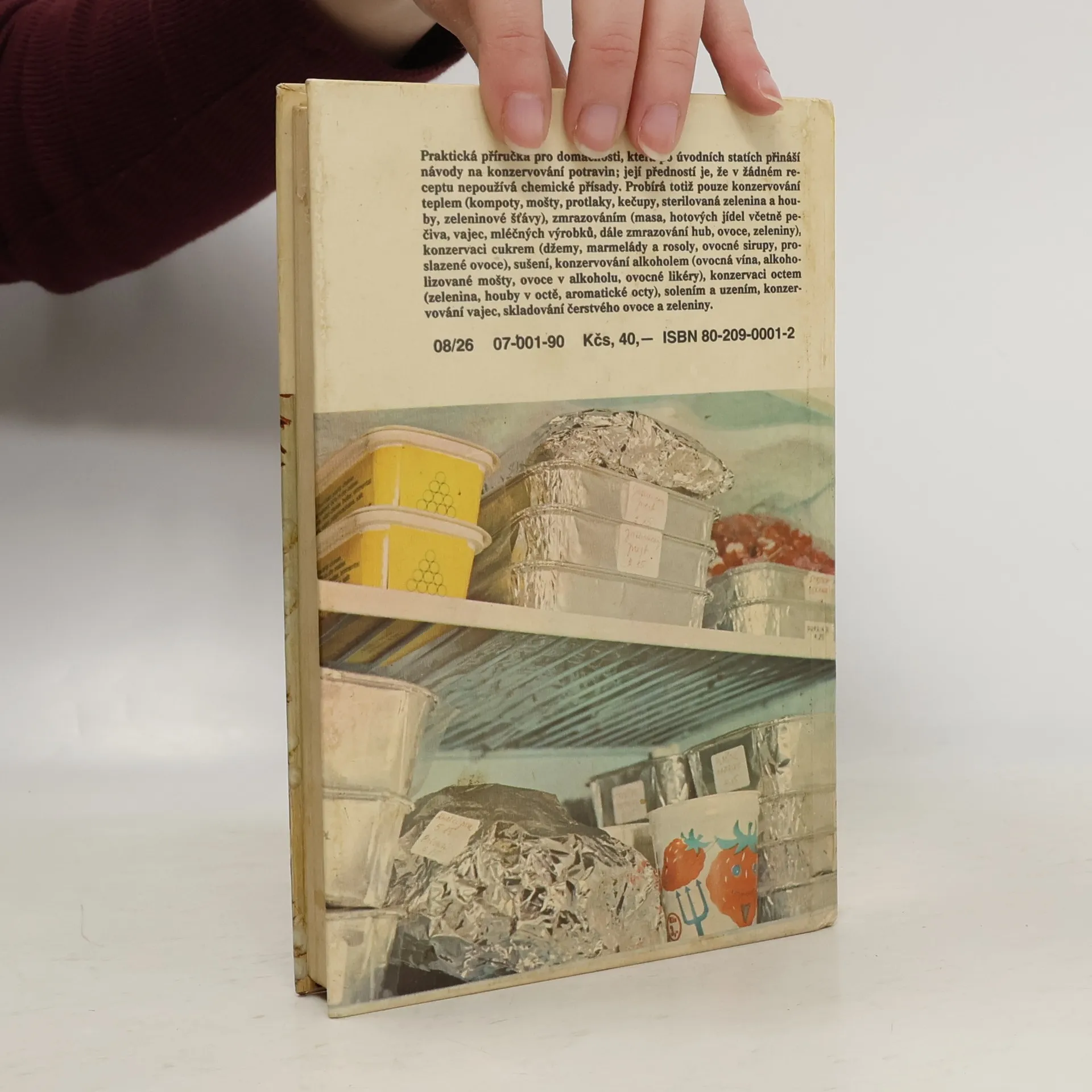Praktická příručka pro domáctnost, která po úvodních statích přináší návody na konzervování potravin; její předností je, že v žádném receptu nepoužívá chemické přísady. Probírá totiž pouze konzervování teplem (kompoty, mošty, protlaky, kečupy, sterilovoná zelenina a houby, zeleninové štávy, zmrazováním (masa, hotových jídel včetně pečiva, vajec, mléčních výrobků, hub, ovoce,zeleniny), konzervaci cukrem (džemy, marmelády, rosoly, ovocné sirupy, proslazené ovoce), sušení, konzervování alkoholem (ovocná vína, alkoholizované mošty, ovoce v alkoholu, ovocné likéry), konzervaci octem (zelenina, houby v octě, aromatické octy), solením a uzením, konzervování vajec, skladování čerstvého ovoce a zeleniny.