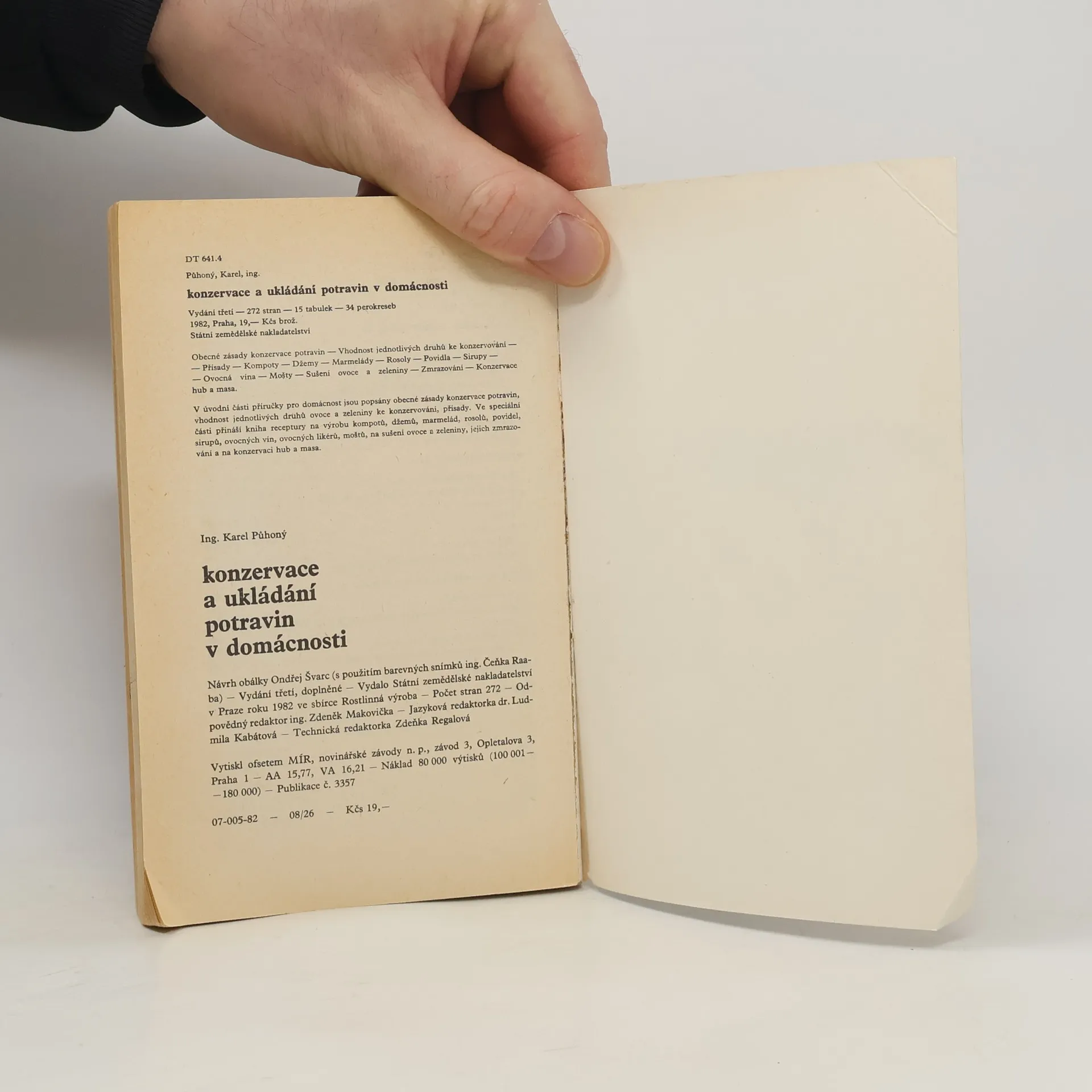 Praktická příručka pro domácnost, která po úvodních statích přináší návody na konzervování potravin; její předností je, že v žádném receptu nepoužívá chemické přísady. Probírá totiž pouze konzervování teplem (kompoty, mošty, protlaky, kečupy, sterilovaná zelenina a houby, zeleninové šťávy, zmrazováním (masa, hotových jídel včetně pečiva, vajec, mléčných výrobků, hub, ovoce,zeleniny), konzervaci cukrem (džemy, marmelády, rosoly, ovocné sirupy, proslazené ovoce), sušení, konzervování alkoholem (ovocná vína, alkoholizované mošty, ovoce v alkoholu, ovocné likéry), konzervaci octem (zelenina, houby v octě, aromatické octy), solením a uzením, konzervování vajec, skladování čerstvého ovoce a zeleniny.