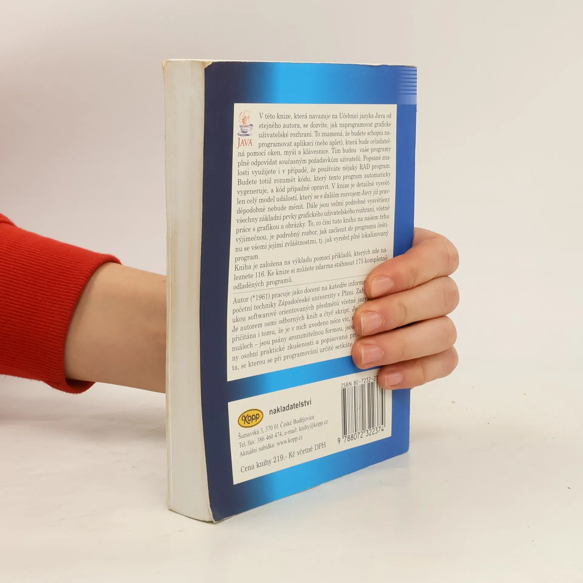 V této knize, která navazuje na Učebnici jazyka Java od stejného autora, se dozvíte, jak naprogramovat grafické uživatelské rozhraní. To znamená, že budete schopni naprogramovat aplikaci (nebo aplet), která bude ovladatelná pomocí oken, myši a klávesnice. Tím budou vaše programy plně odpovídat současným požadavkům uživatelů. Popsané znalosti využijete i v případě, že používáte nějaký RAD program. Budete totiž rozumět kódu, který tento program automaticky vygeneruje, a kód případně opravit. V knize je detailně vysvětlen celý model událostí, který se s dalším rozvojem Javy již pravděpodobně nebude měnit. Dále jsou velmi podrobně vysvětleny všechny základní prvky grafického uživatelského rozhraní, včetně práce s grafikou a obrázky. To, co činí tuto knihu na našem trhu výjimečnou, je podrobný rozbor, jak začlenit do programu češtinu se všemi jejími zvláštnostmi, tj. jak vyrobit plně lokalizovaný program. Kniha je založena na výkladu pomocí příkladů, kterých zde naleznete 116. V příloze naleznete zdrojové soubory všech příkladů zmíněných v knize. Vše je zabaleno i s adresářovou strukturou programem WinZip.