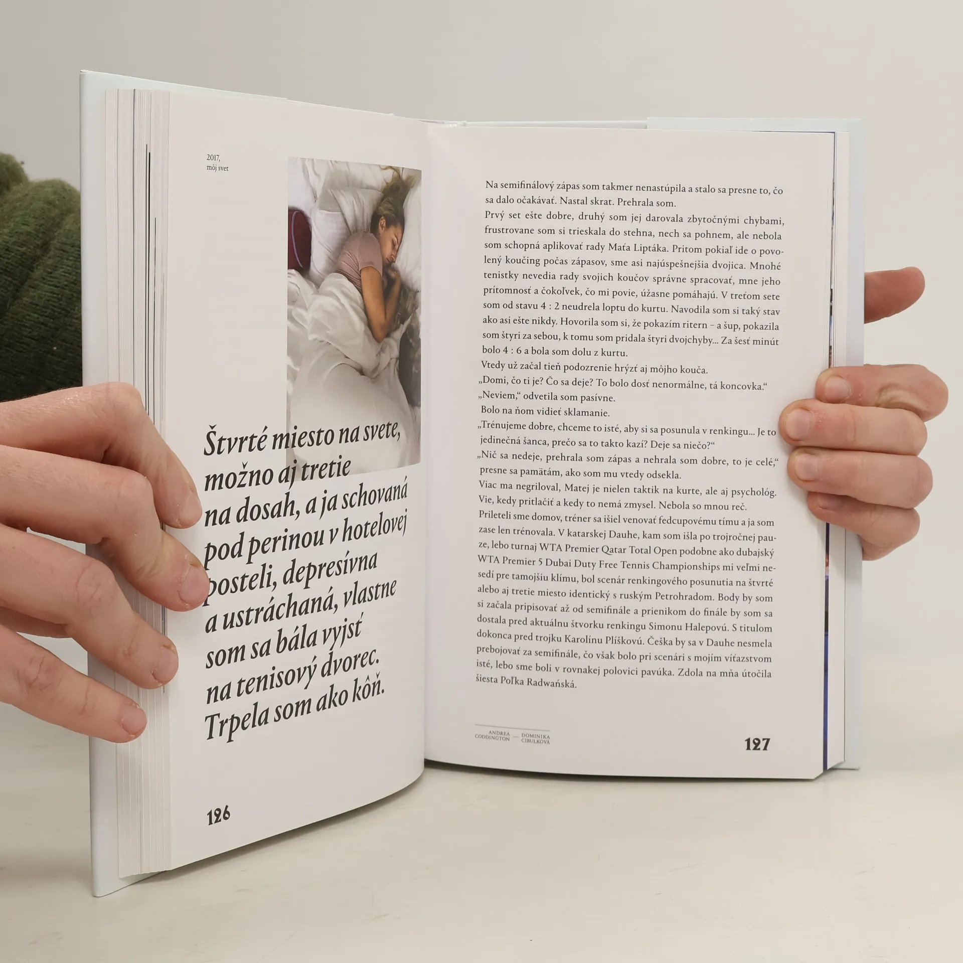 Dominika Cibulková otvorene hovorí o všetkých pádoch a potknutiach, vydretých víťazstvách, vojnách mimo kurtu, ťažkých prehrách či životných križovatkách. Priznáva svoju snahu o dokonalosť na tenisovom kurte, nervozitu, ktorá jej spôsobovala kŕče, depresiu, s ktorou bojovala takmer rok po dosiahnutí najväčšieho úspechu v kariére, priznáva rodinné problémy pre lásku. Milujú ju ľudia na celom svete, ale stala sa aj terčom nenávistných komentárov. Jej úprimná biografia zaujme i tých, ktorí o tenise nič nevedia. Je najoceňovanejšia slovenská tenistka, ktorá bola najvyššie zo všetkých v svetovom tenisovom rebríčku a ako jediná doteraz sa prebojovala do finále grandslamu a stala sa majsterkou sveta. Úspech sa nerodil ľahko, v detstve jej nikto neveril a nebyť buldočej zaťatosti jej rodičov, húževnatosti a pracovitosti, ktorou od začiatku vynikala, možno by jej príbeh bol úplne iný. Stala sa z nej tenistka svetového formátu, a predsa stále rešpektuje autoritu a úspech prijíma s pokorou.