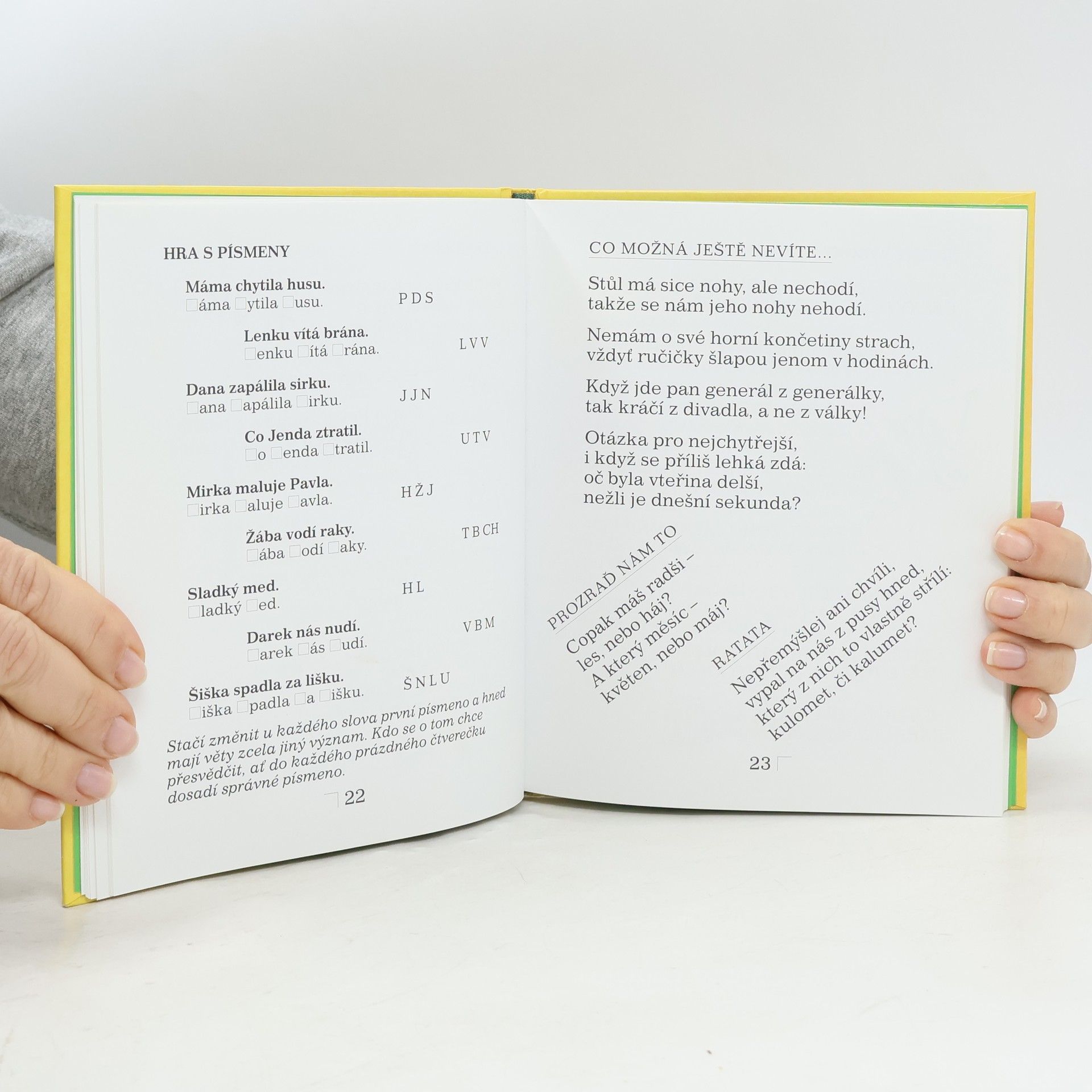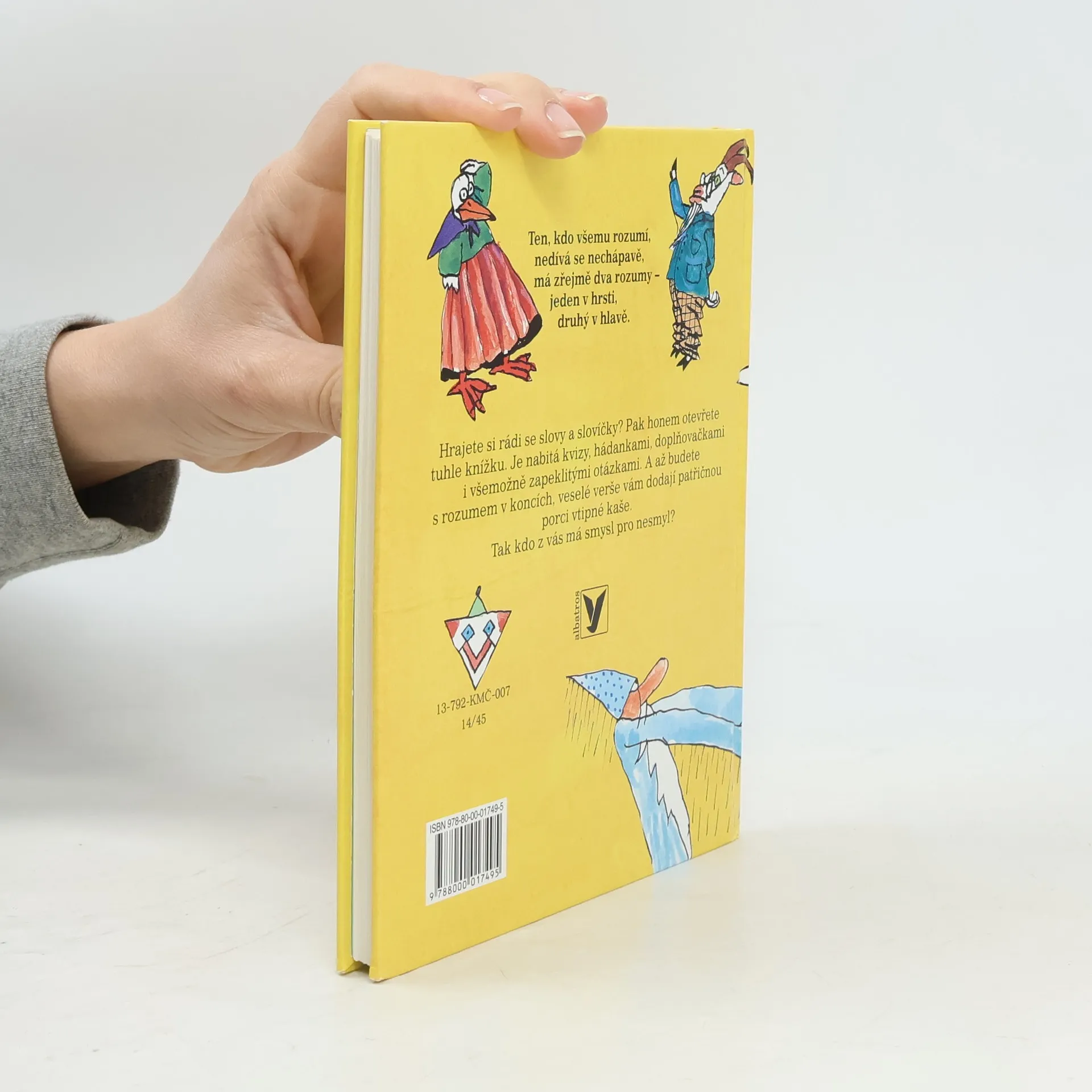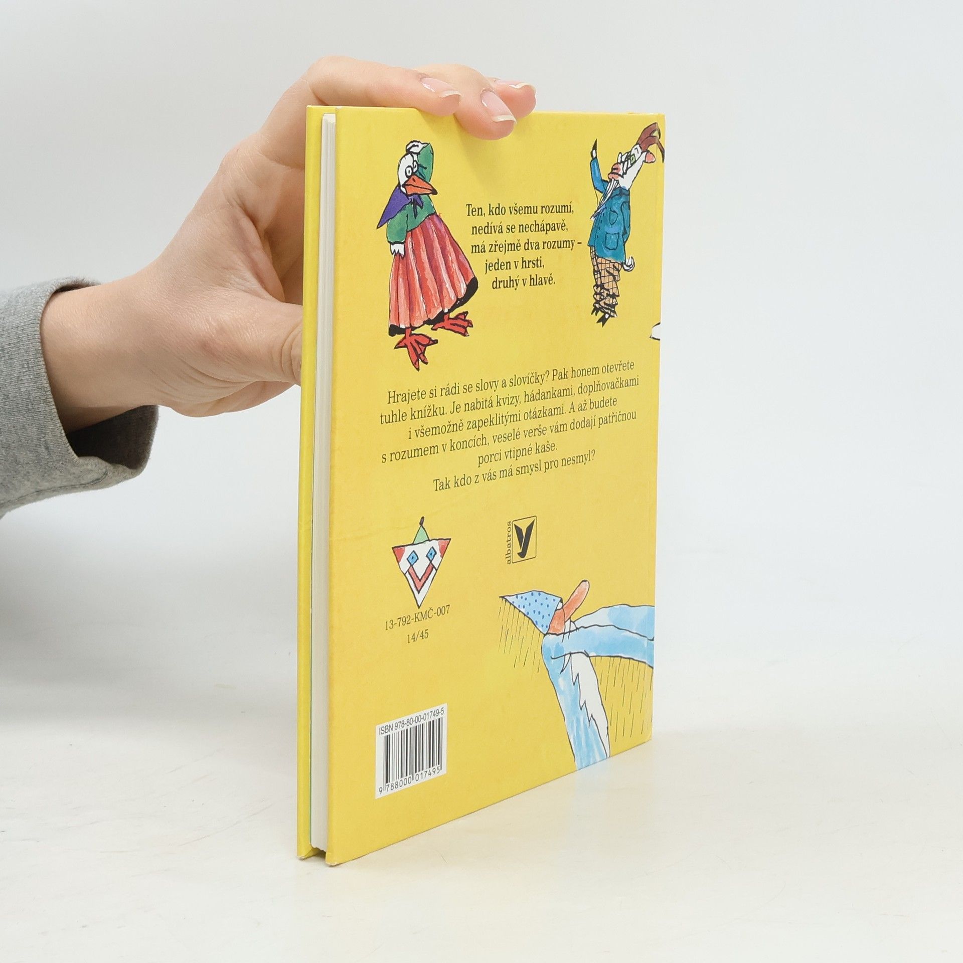 Hrajete si rádi se slovy a slovíčky? Pak je tato knížka přesně pro vás. Je nabitá kvízy, hádankami, přesmyčkami, doplňovačkami, i všemožně zapeklitými otázkami. Knížka zaujme, pobaví, a zároveň nutí k přemýšlení a k tvořivé práci s češtinou. Je pestrá a veselá, úkoly jsou snazší i náročnější, ale nebojte se, na konci knihy nechybí rozluštění. A tak si můžete ověřit svůj důvtip i logické uvažování. Tak jestlipak máte smysl pro nesmysl?