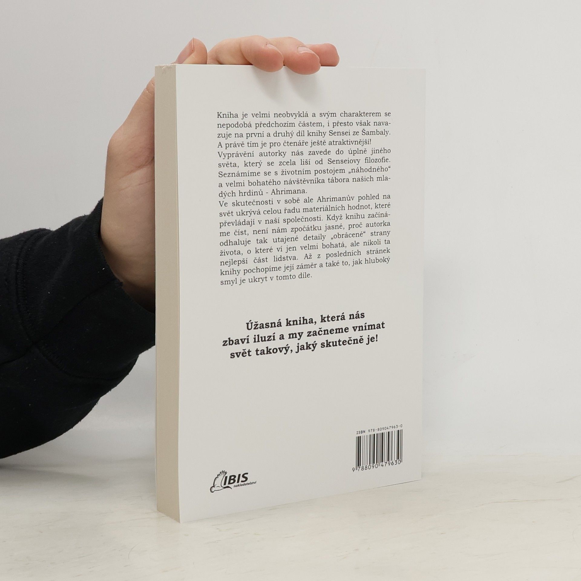 Zcela výjimečná kniha, která se poněkud liší od předchozích stylů, ale zároveň je pokračováním 1. a 2.dílů Senseie ze Šambaly. Právě touto svou nevšedností je pro mnohé čtenáře ještě atraktivnější! Během prázdninového pobytu ve stanovém táboře se objeví velmi tajemný a bohatý návštěvník Ahriman. Jeho filozofie a životní postoje jsou naprosto odlišné od Senseiova myšlení. Obraz Ahrimana je ztělesněním přání, tužeb a hodnot, které převládají v současné společnosti. Zpočátku, když budete číst knihu, asi neporozumíte tomu, proč se odhaluji natolik utajené podrobnosti "obrácené" strany života, které zná jen velmi bohatá část lidstva. Když ale knihu dočtete, uvědomíte si, jak hluboký obsah vložila autorka do tohoto díla.