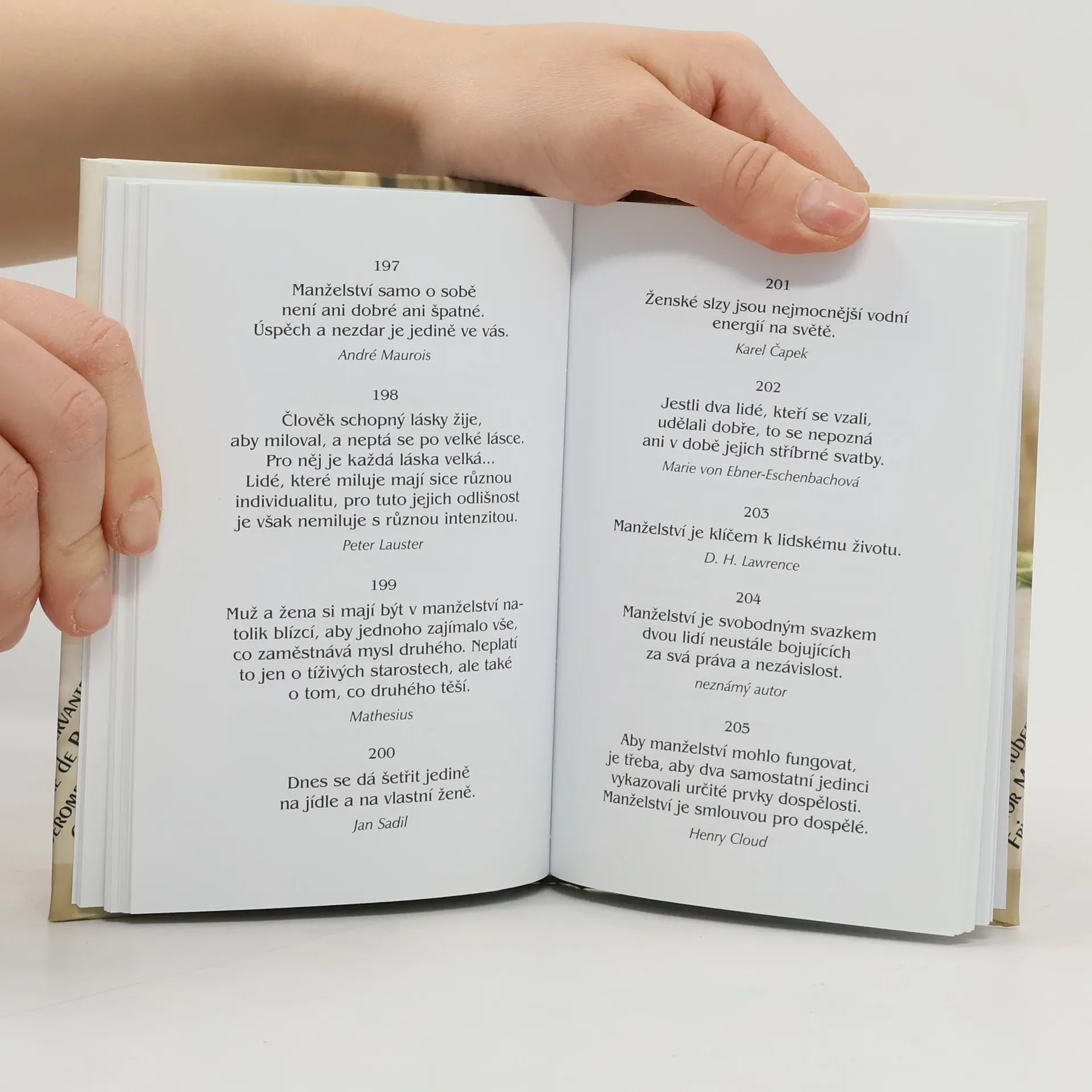 Sbírka myšlenek významných osobností obsahuje krátká zamyšlení nad smyslem, posláním, úskalími a obohacujícími dary, které manželství přináší.