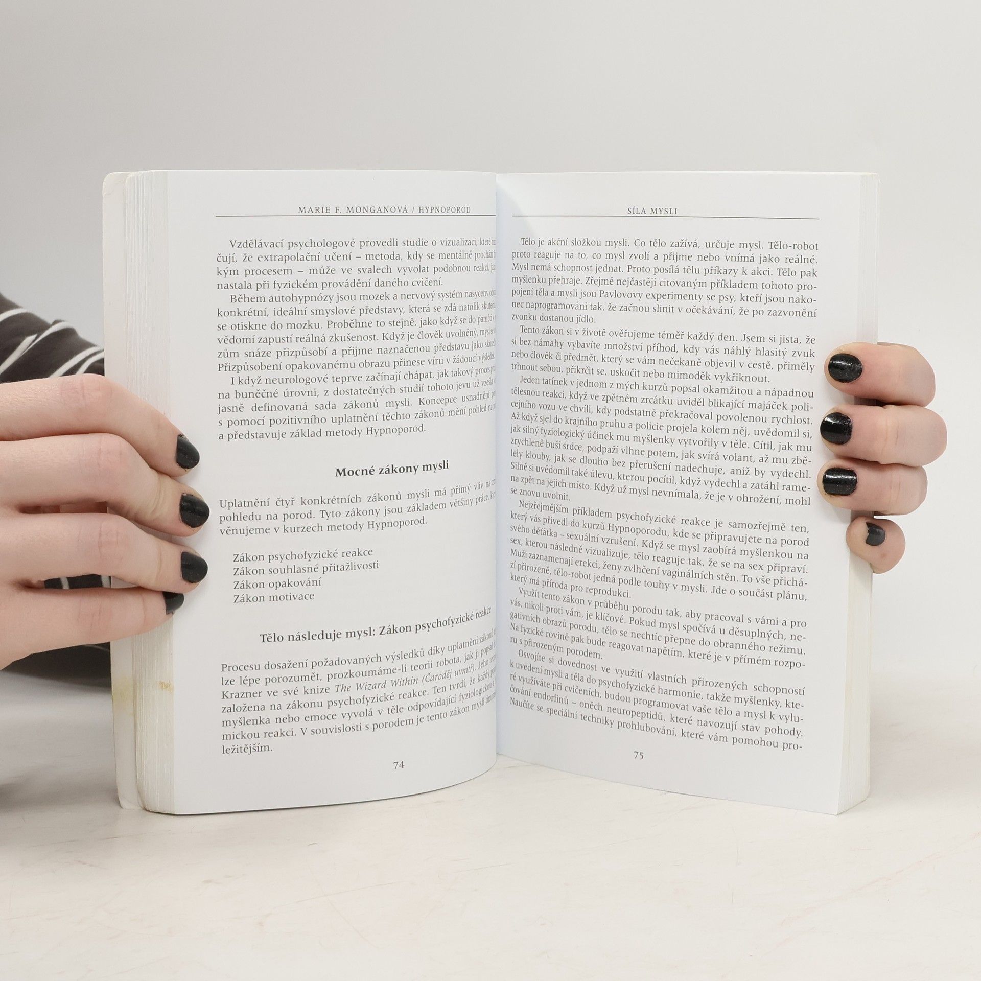 Česká republika patří k zemím, kde se většina žen porodu bojí. Často nemají jiné přání, než ho mít rychle za sebou. To první, co většinu dnešních žen v souvislosti s porodem napadá, je vědomí rizika a hrůza z bolesti. Autorka neprosazuje hypnoporody za přítomnosti odborného hypnotizéra, nýbrž vede každou jednu ženu ke schopnosti autohypnózy. Nejde tu o nic víc než o nejhlubší uvolnění, relaxaci, vnoření se do vlastního těla za současného odpojení racionálního vnímání, které umí spolehlivě zastavit jak orgasmus, tak spontánní porodní proces. Možná s autorkou nebudeme ve všem souhlasit, přesto připomíná podstatné. Těhotným a rodícím ženám skrytou moudrost a sílu jejich těl a těm, kdo o nastávající matky pečují, důležitost respektu a empatie.