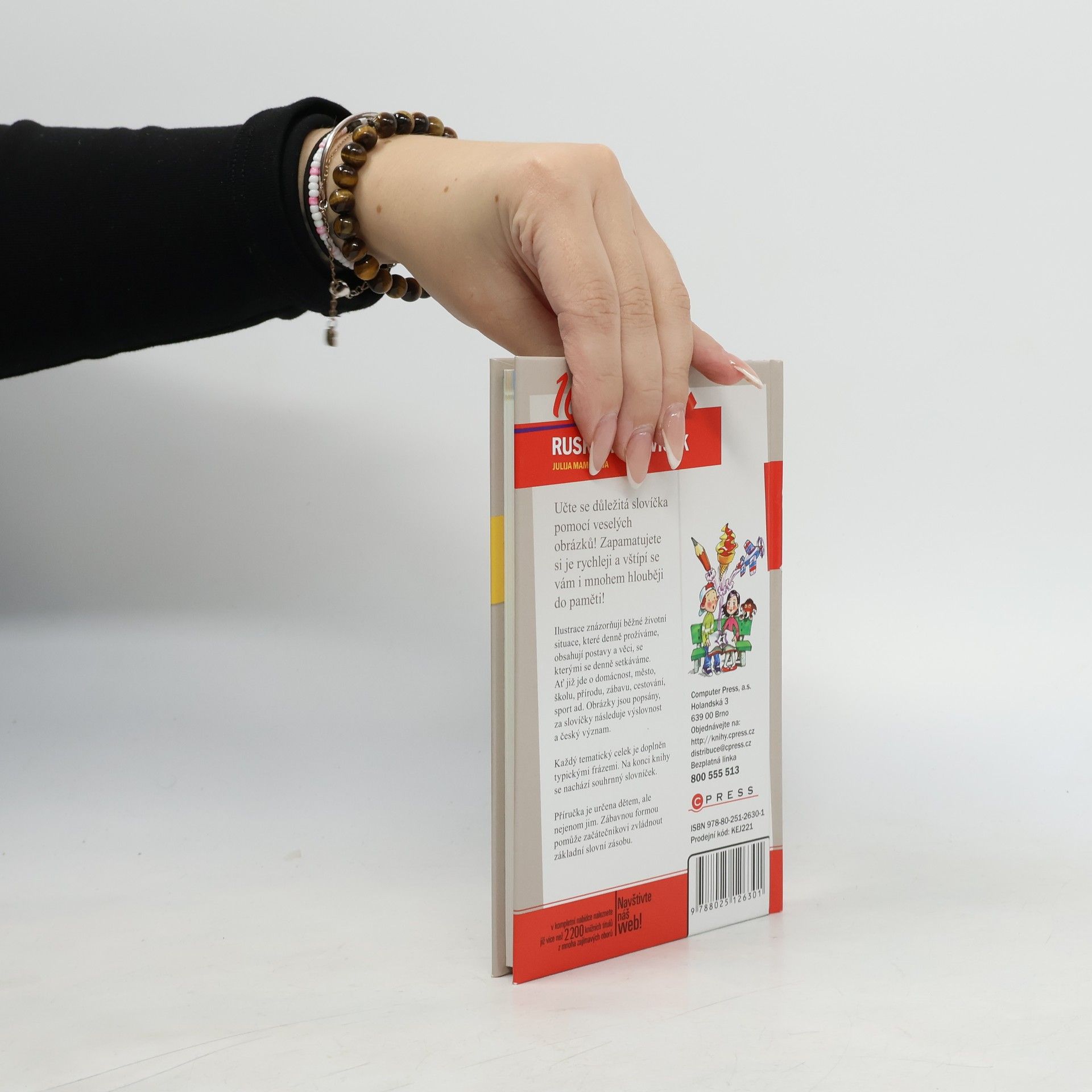 Praktická knížka se stane dobrým pomocníkem při učení a procvičování ruských slovíček. Na veselých obrázcích, jež znázorňují běžné životní situace, najdete názvy věcí, se kterými se denně setkáváte. Každý tematický celek je pak doplněn jednoduchými frázemi ze života, které můžete potřebovat. V závěru se nachází souhrnný česko-ruský slovník se všemi slovy z knížky a poznámky k ruské výslovnosti.