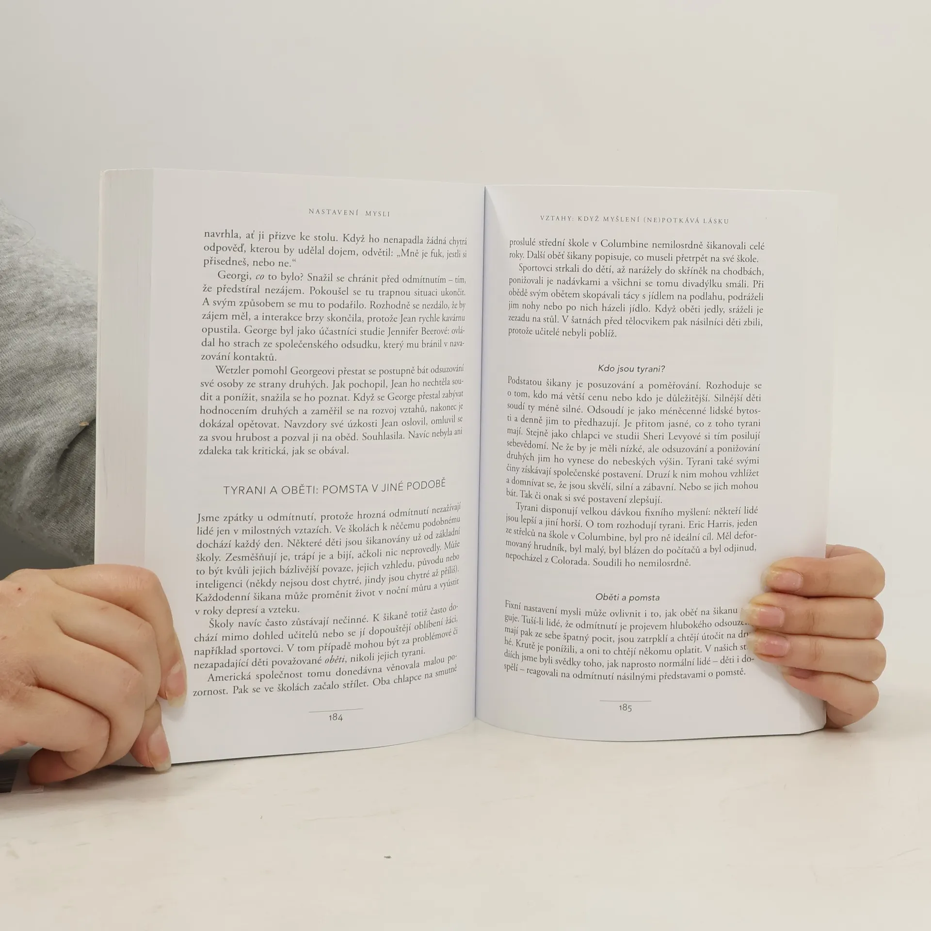 Jednoduchá myšlenka, kolem níž se tato kniha točí, a za níž stojí desítky let vědeckého výzkumu, se dá vyjádřit zhruba takto: úspěch máme ve svých hlavách. Profesorka Dwecková se svým týmem na Standfordské univerzitě zjistila, že svou přirozeností tíhneme ke dvěma relativně vyhraněným způsobům myšlení o sobě a své úspěšnosti: k myšlení růstovému a myšlení fixnímu (angl. „growth mindset“ a „fixed mindset“). To, které myšlení u nás převládá, pak významně ovlivňuje naši reálnou úspěšnost. Ke zjištěním Dweckové popsaným v knize patří nadějný závěr, že se navzdory své dispozici dokážeme během života změnit, a autorka ukazuje, jak na to: jak využít svůj plný potenciál. Chcete vědět, jak přesně se dva zmíněné typy myšlení projevují? Typickým rysem fixního myšlení je vzdávání se před překážkou, neschopnost přijímat zpětnou vazbu, špatný pocit při vnímání úspěchu ostatních, vyhýbání se výzvám a negativní postoj k úsilí jako takovému. Naopak růstové myšlení se projevuje vřelým vztahem k výzvám, vytrvalostí při čelení překážkám, pozitivním vztahem ke kritice. Růstově myslící člověk vnímá úsilí jako cestu k mistrovství a v úspěchu druhých vidí inspiraci.