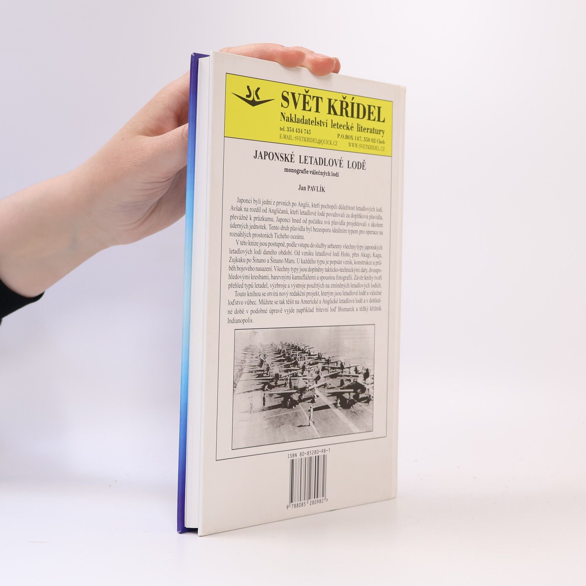 Japonci byli jedni z prvních po Anglii, kteří pochopili důležitost letadlových lodí. Avšak na rozdíl od Angličanů, kteří letadlové lodě považovali za doplňková plavidla, převážně k průzkumu, Japonci hned od počátku svá plavidla projektovali s úkolem úderných jednotek. Tento druh plavidla byl beze sporu ideálním typem pro operace na rozsáhlých prostorách Tichého oceánu. V této knize jsou postupně, podle vstupu do služby, seřazeny všechny typy japonských letadlových lodí daného období. Od vzniku letadlové lodi Hošo, přes Akagi, Kagu, Zuikaku po Šinano a Šinano Maru. U každého typu je popsán vznik, konstrukce a průběh bojového nasazení. Všechny typy jsou doplněny takticko-technickými daty, dvoupohledovými kresbami, barevnými kamuflážemi a spoustou fotografií. Závěr knihy tvoří přehled typů letadel, výzbroje a výstroje použitých na zmíněných letadlových lodích.