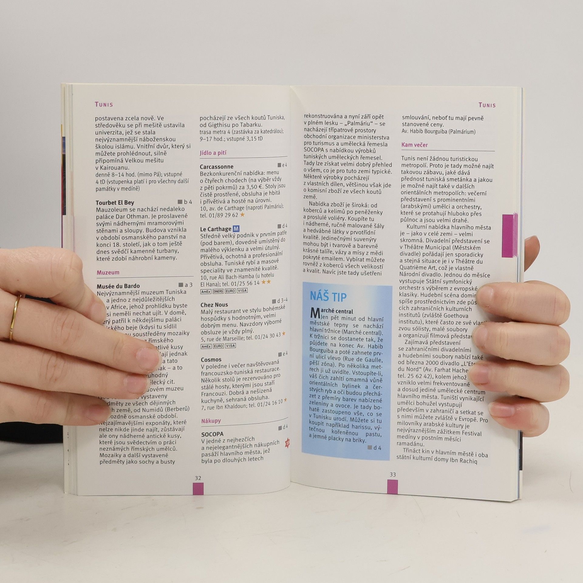 Cestovní průvodce nabízí dosud nejaktuálnější informace o zajímavých místech Tuniska. Německý autor tohoto průvodce žije od r.1994 převážně v Tunisku. Podává proto zasvěcené informace o turistických atrakcích tohoto státu. Kromě typických turistických míst doporučuje i výlety do oblastí méně známých. Uvádí seznam výletů, které lze absolvovat autem, vlakem i pěšky. Kniha obsahuje mapy státu a plánky velkých měst, popisy hotelů a restaurací v těchto městech, včetně informací o typických jídlech nebo kulturním životě. V kapitole Tunisko od A do Z je mnoho praktických rad, které cestovatel ocení,jak před odjezdem, tak i během pobytu v Tunisku. V kapitolách "Něco navíc" se zájemce dozví o programu pro děti nebo o možnostech sportovního vyžití v turistických centrech. Kniha obsahuje i malý česko-francouzský slovníček nejdůležitějších výrazů. Záložky pak obsahují osobní doporučení autora, týkající se pamětihodností, ubytování, restaurací i nákupů.