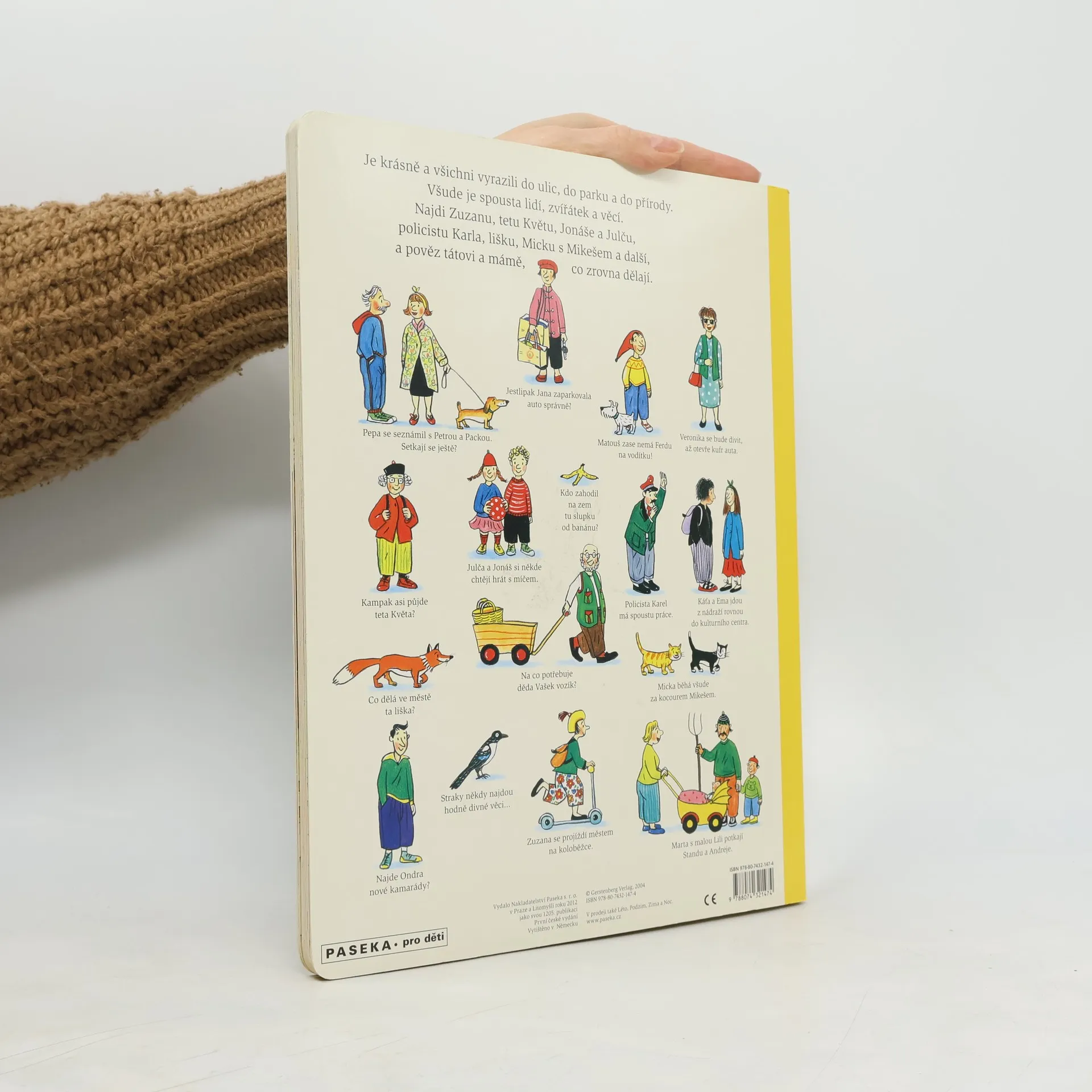 Jednoduchou řečí obrázků vypráví renomovaná autorka a ilustrátorka dětských knih Rotraut Susanne Bernerová příběhy všedního dne, obratně a vtipně splétá dohromady drobné epizody. "Malý čtenář" může v knížce hledat postavičky a zvířátka a sledovat co dělají od první do poslední stránky. Kudy chodí teta Květa, kde si kluk Ondra bude hrát s kamarády nebo co dělá ve městě liška.