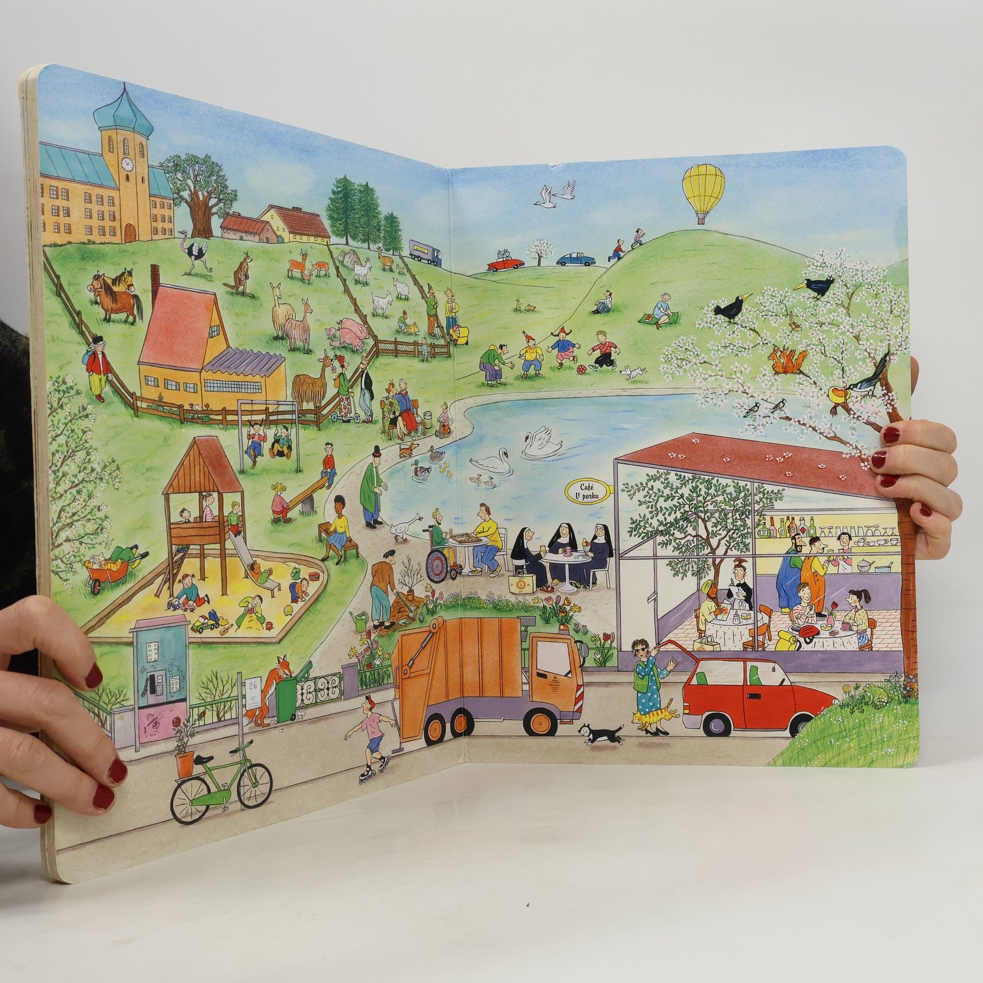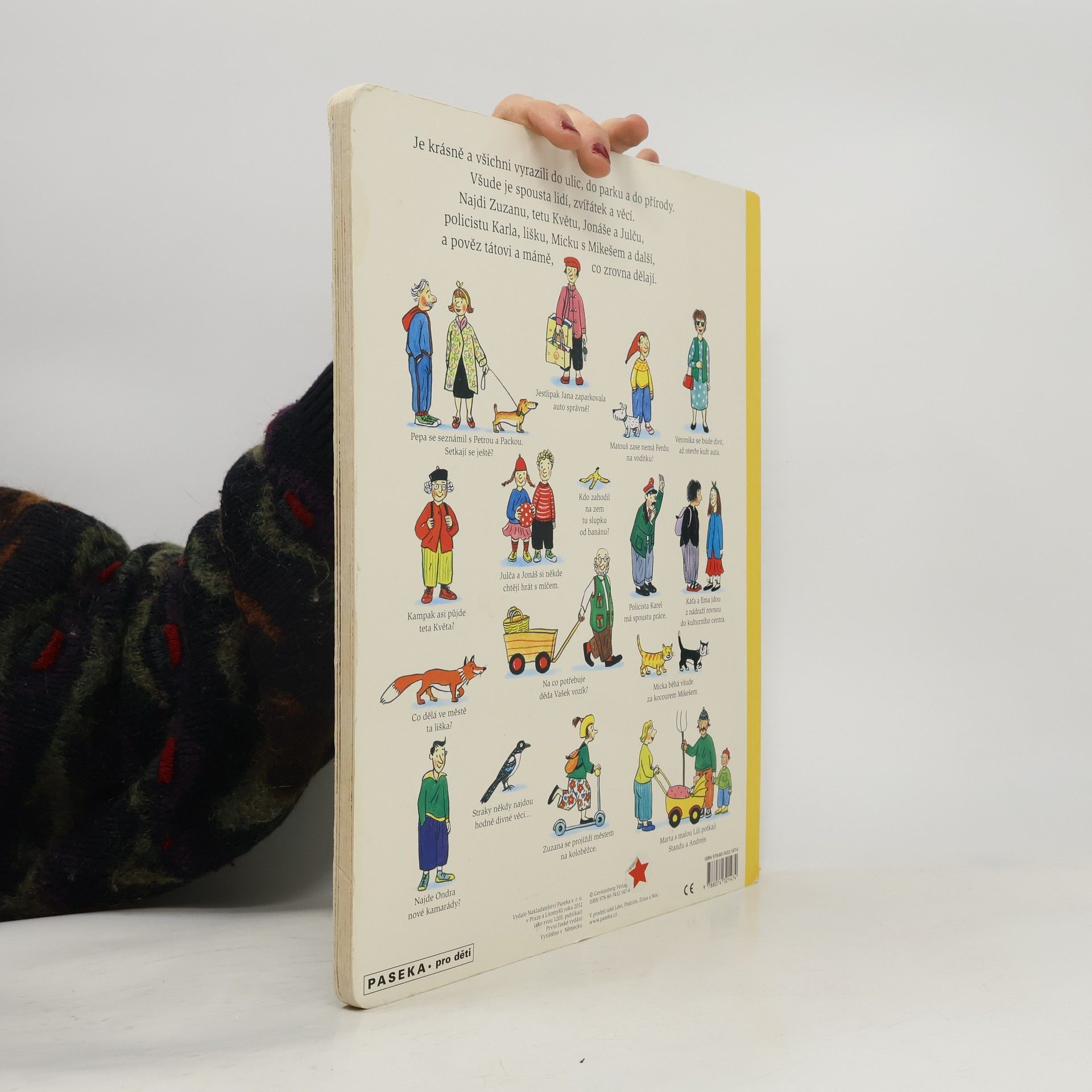 Jednoduchou řečí obrázků vypráví renomovaná autorka a ilustrátorka dětských knih Rotraut Susanne Bernerová příběhy všedního dne, obratně a vtipně splétá dohromady drobné epizody. "Malý čtenář" může v knížce hledat postavičky a zvířátka a sledovat co dělají od první do poslední stránky. Kudy chodí teta Květa, kde si kluk Ondra bude hrát s kamarády nebo co dělá ve městě liška.