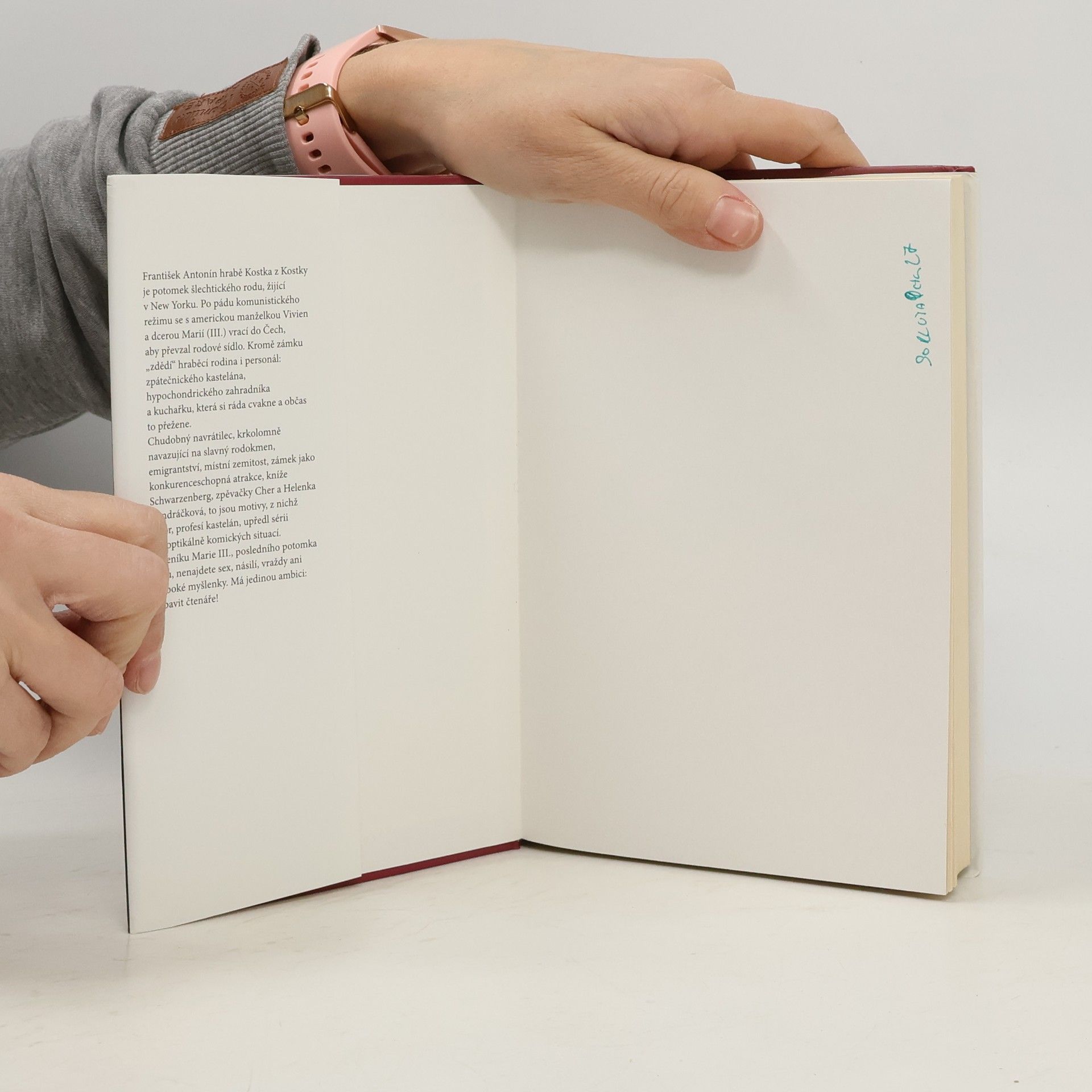František Antonín hrabě Kostka z Kostky je potomek šlechtického rodu, žijící v New Yorku. Po pádu komunistického režimu se s americkou manželkou Vivien a dcerou Marií (III.) vrací do Čech, aby převzal rodové sídlo. Kromě zámku „zdědí“ hraběcí rodina i personál: zpátečnického kastelána, hypochondrického zahradníka a kuchařku, která si ráda cvakne a občas to přežene. Chudobný navrátilec, krkolomně navazující na slavný rodokmen, emigrantství, místní zemitost, zámek jako konkurenceschopná atrakce, kníže Schwarzenberg, zpěvačky Cher a Helenka Vondráčková, to jsou motivy, z nichž autor, profesí kastelán, upředl sérii panoptikálně komických situací. V deníku Marie III., posledního potomka rodu, nenajdete sex, násilí, vraždy ani hluboké myšlenky. Má jedinou ambici: pobavit čtenáře!