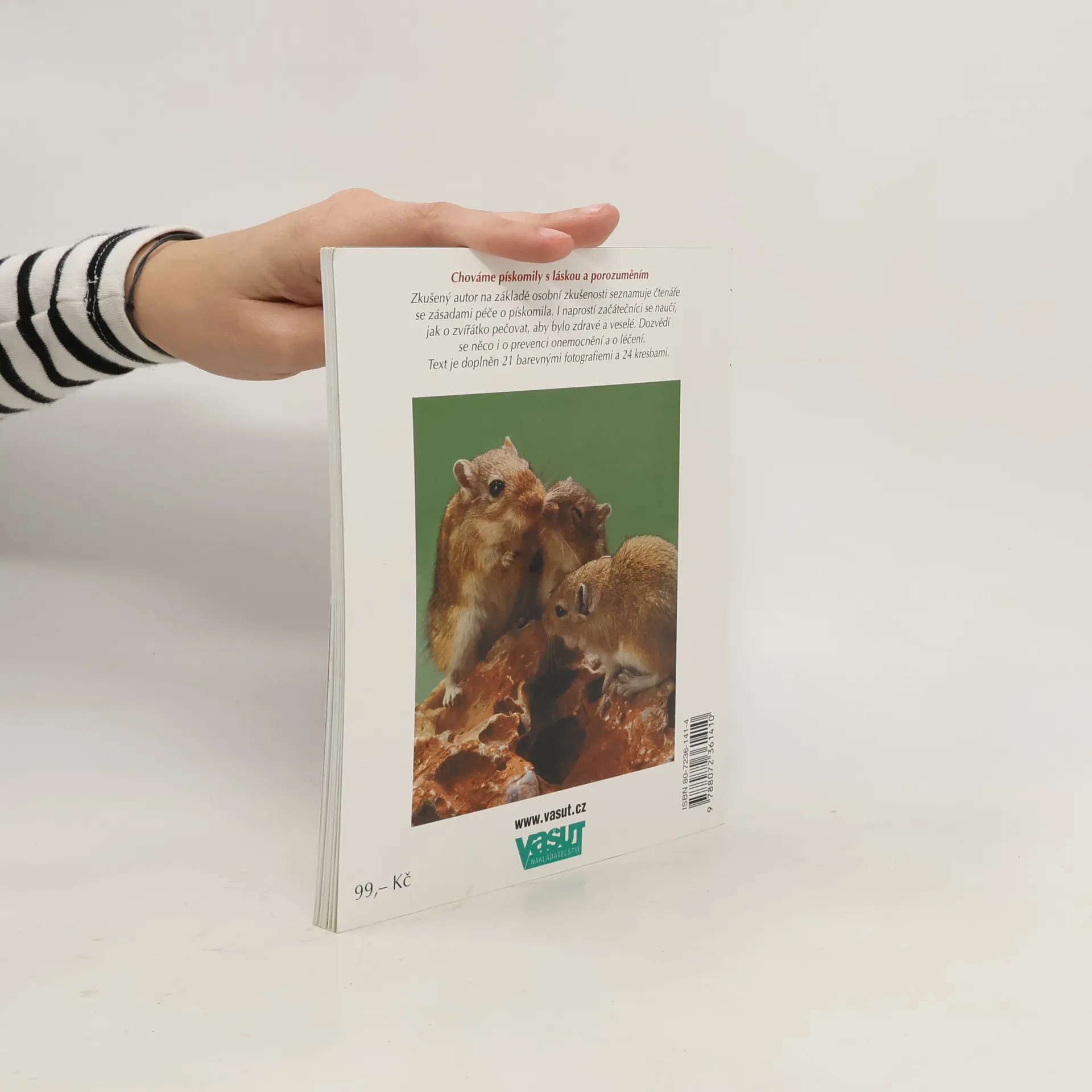 Zkušený autor na základě osobní zkušenosti seznamuje čtenáře se zásadami péče o pískomila. I naprostí začátečníci se naučí, jak o zvířátko pečovat, aby bylo zdravé a veselé. Dozvědí se něco i o prevenci onemocnění a o léčení. Text je doplněn 21 barevnými fotografiemi a 24 kresbami.