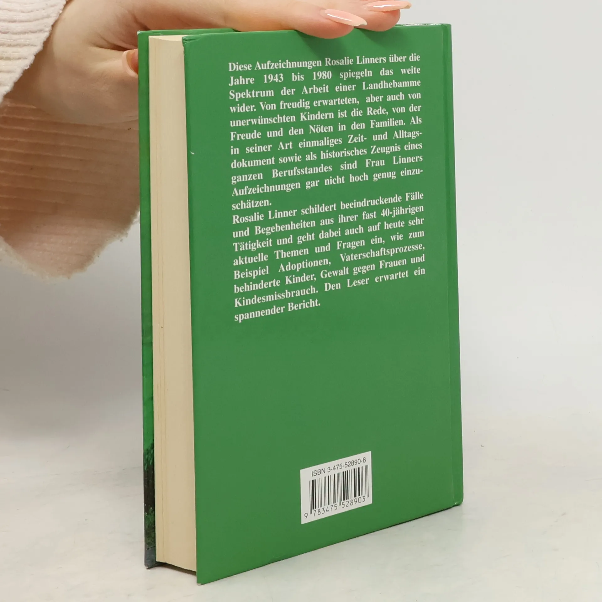 Dieses „Tagebuch“ Rosalie Linners über die Jahre 1943 bis 1980 spiegelt das weite Spektrum der Arbeit einer Landhebamme. Als in seiner Art einmaliges Zeit- und Alltagsdokument sowie als historisches Zeugnis eines ganzen Berufsstandes sind Rosalie Linners Aufzeichnungen gar nicht hoch genug einzuschätzen. Rosalie Linner schildert beeindruckende Fälle und Begebenheiten aus ihrer fast 40-jährigen Tätigkeit und geht dabei auch auf heute sehr aktuelle Themen und Fragen ein, wie zum Beispiel Adoptionen, Vaterschaftsprozesse, behinderte Kinder, Gewalt gegen Frauen, Kindesmissbrauch und medizinische Technik contra Hausgeburten. Die Autorin fesselt den Leser mit ihren liebevollen und spannenden Schilderungen.