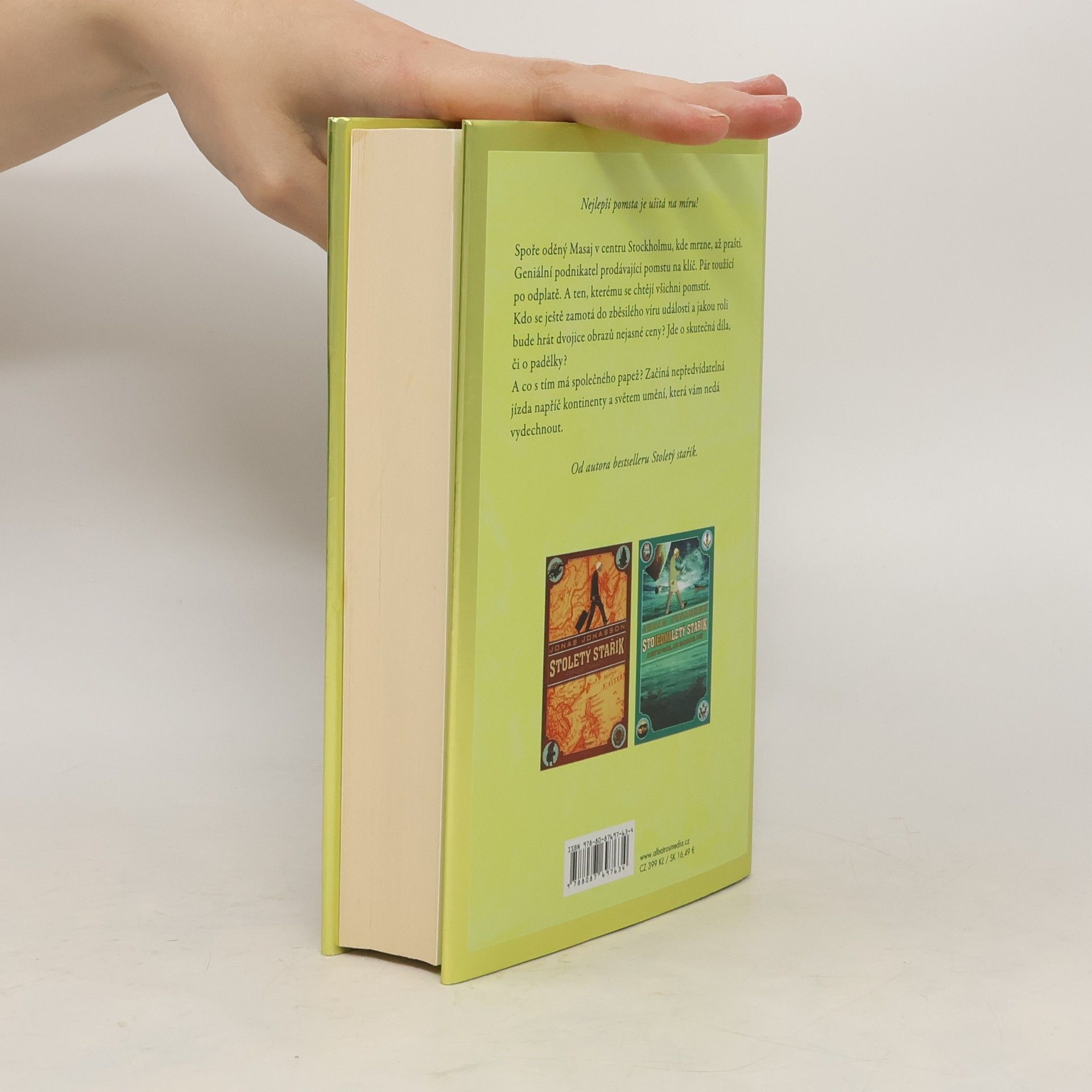 Nejlepší pomsta je ušitá na míru! Od autora bestselleru Stoletý stařík. Spoře oděný Masaj v centru Stockholmu, kde mrzne, až praští. Geniální podnikatel prodávající pomstu na klíč. Pár toužící po odplatě. A ten, kterému se chtějí všichni pomstít. Kdo se ještě zamotá do zběsilého víru událostí a jakou roli bude hrát dvojice obrazů nejasné ceny? Jde o skutečná díla, či o padělky? A co s tím má společného papež? Začíná nepředvídatelná jízda napříč kontinenty a světem umění, která vám nedá vydechnout.