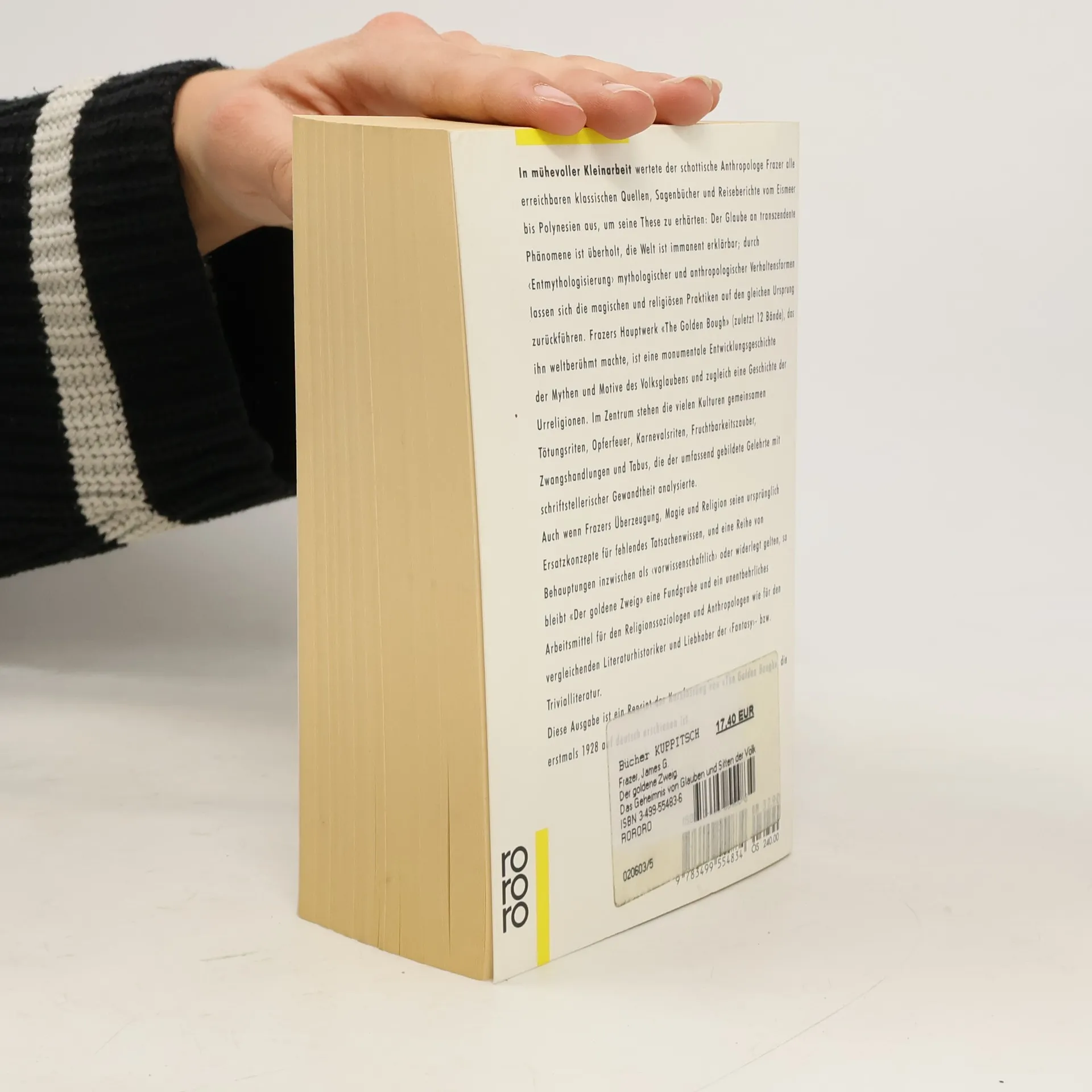 Der schottische Anthropologe Frazer wertete akribisch klassische Quellen, Sagenbücher und Reiseberichte aus, um seine These zu untermauern: Der Glaube an transzendente Phänomene ist überholt, und die Welt ist immanent erklärbar. Durch die ‹Entmythologisierung› mythologischer und anthropologischer Verhaltensweisen lassen sich magische und religiöse Praktiken auf einen gemeinsamen Ursprung zurückführen. Frazers Hauptwerk, das ihn weltberühmt machte, ist eine monumentale Entwicklungsgeschichte der Mythen und Motive des Volksglaubens sowie eine Geschichte der Urreligionen. Im Mittelpunkt stehen zahlreiche Kulturen mit gemeinsamen Tötungsriten, Opferfeuern, Karnevalsriten, Fruchtbarkeitszaubern, Zwangshandlungen und Tabus, die der Gelehrte mit schriftstellerischer Gewandtheit analysierte. Obwohl Frazers Überzeugung, dass Magie und Religion ursprünglich Ersatzkonzepte für fehlendes Tatsachenwissen seien, in Frage gestellt wird und einige seiner Behauptungen als ‹vorwissenschaftlich› gelten, bleibt seine Arbeit eine Fundgrube und ein unverzichtbares Werkzeug für Religionssoziologen, Anthropologen sowie Literaturhistoriker und Liebhaber der ‹Fantasy›- und Trivialliteratur. Diese Ausgabe ist ein Reprint der Kurzfassung, die erstmals 1928 auf Deutsch erschien.