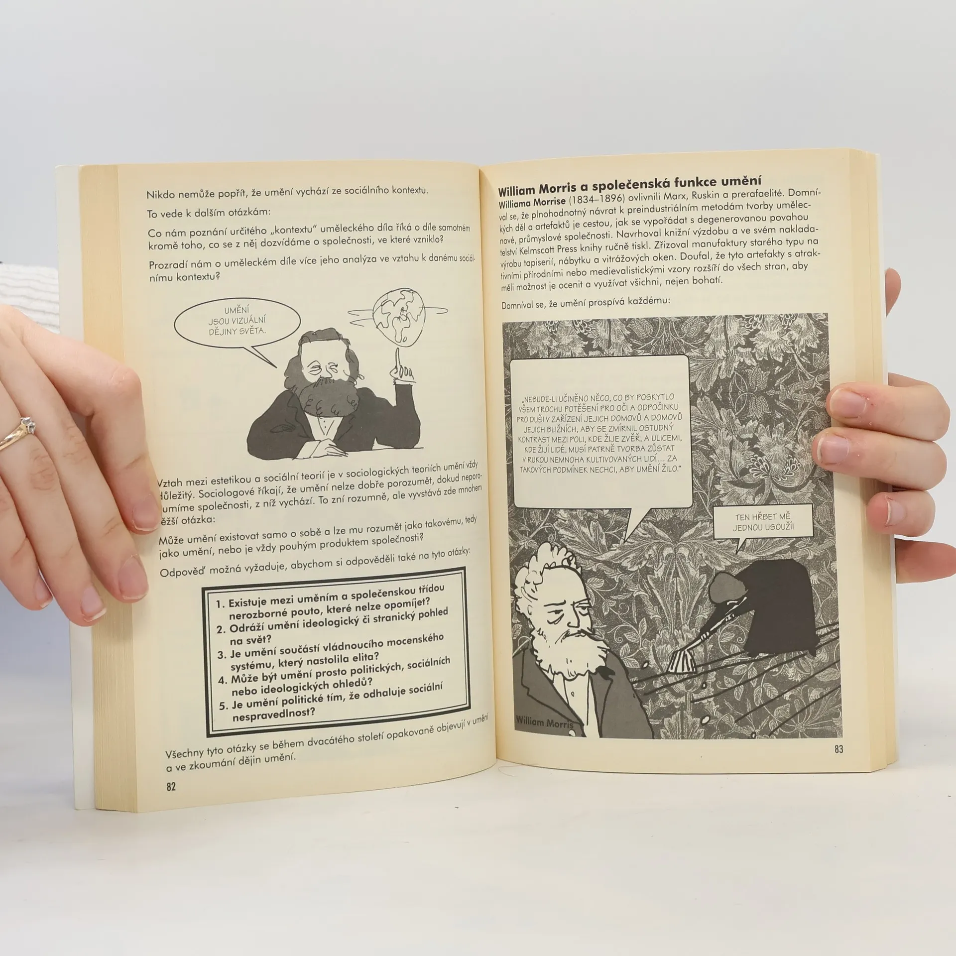 Kniha předkládá zábavnou formou přehled všech důležitých historických i současných myšlenek a teorií, týkajících se umění. Začíná od jeskynních nástěnných maleb lovců mamutů, uvádí myšlenky řeckých klasiků Platona a Aristotela, mapuje klasiky středověku a renesance (Tomáše Akvinského, Giorgia Vasariho, Leonarda da Vinciho), probírá filozofii estetiky anglických racionalistů, německých hegeliánů, zmiňuje se o klasicích moderny a končí postmodernou. Kniha je určena studentům filozofie, estetiky, dějin umění, ale i všem zájemcům o teorii umění.
