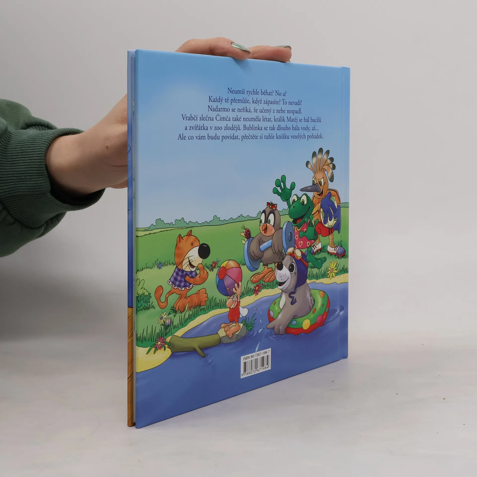 Neumíš rychle běhat? Každý tě přemůže, když zápasíte? To nevadí! Nadarmo se neříká, že učený z nebe nespadl. Vrabčí slečna Čimča také neuměla létat, králík Matěj se bál bacilů a zvířátka v zoo zlodějů. Bublinka se tak dlouho bála vody, až ... Ale co vám budu povídat, přečtěte si tuhle knížku Veselé pohádky se zvířátky...
