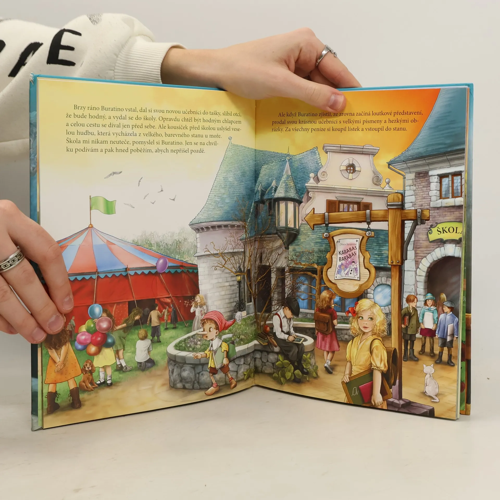Chudý Carlo dostane od svého přítele neobvyklý dárek, který mu má vnést radost do života. Dárek vypadá jako obyčejné poleno, je však kouzelné, má v sobě život. Carlo si z něj vyřeže loutku a pojmenuje ji Buratino. Dřevěného chlapce miluje jako vlastního syna, ten mu však přidělává samé starosti, myslí totiž jen na sebe. Buratino prožije spoustu dobrodružství a na svých cestách si najde mnoho kamarádů. Převyprávěno na motivy původního příběhu Alexeje Tolstého.
