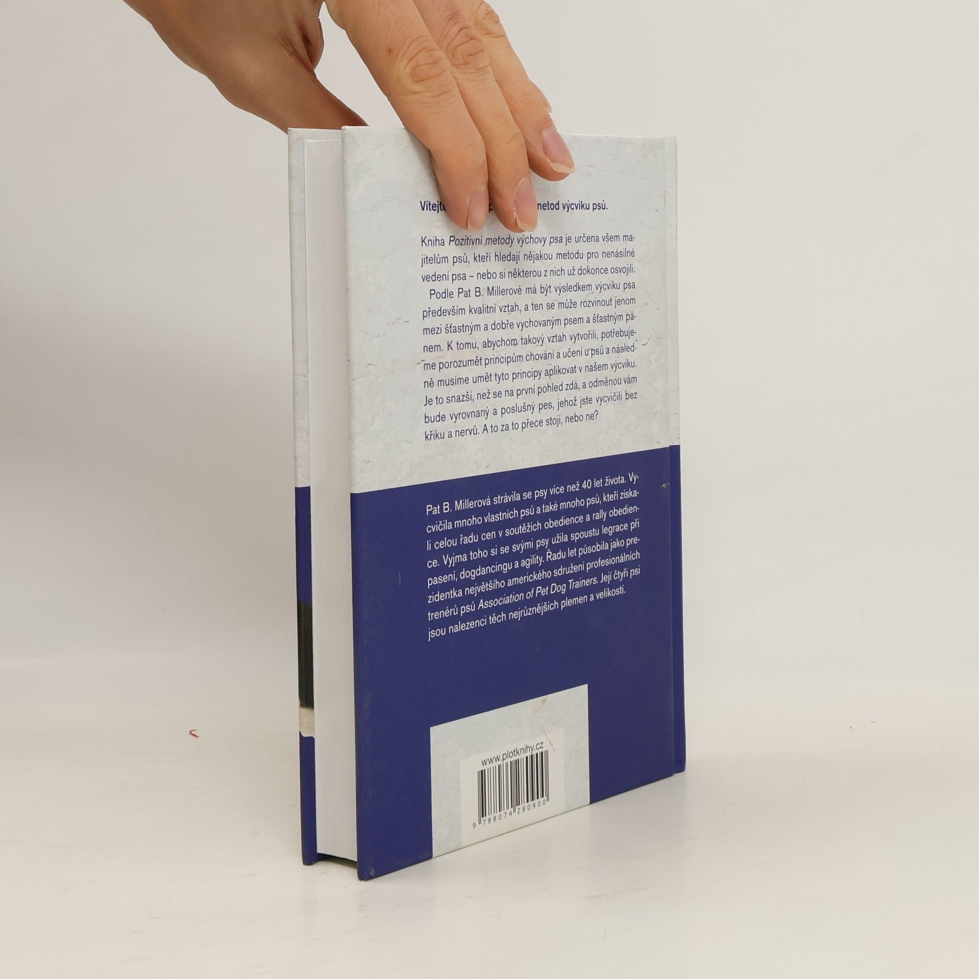 Vítejte ve světě pozitivních metod výcviku psů. Kniha je určena všem majitelům psů, kteří hledají nějakou metodu pro nenásilné vedení psa – nebo si některou z nich už dokonce osvojili. Podle Pat B. Millerové má být výsledkem výcviku psa především kvalitní vztah, a ten se může rozvinout jenom mezi šťastným a dobře vychovaným psem a šťastným pánem. K tomu, abychom takový vztah vytvořili, potřebujeme porozumět principům chování a učení u psů a následně musíme umět tyto principy aplikovat v našem výcviku. Je to snazší, než se na první pohled zdá, a odměnou vám bude vyrovnaný a poslušný pes, jehož jste vycvičili bez křiku a nervů. A to za to přece stojí, nebo ne? Pat B. Millerová strávila se psy více než 40 let života. Vycvičila mnoho vlastních psů a také mnoho psů, kteří získali celou řadu cen v soutěžích obedience a rally obedience. Vyjma toho si se svými psy užila spoustu legrace při pasení, dogdancingu a agility. Řadu let působila jako prezidentka největšího amerického sdružení profesionálních trenérů psů Association of Pet Dog Trainers. Její čtyři psi jsou nalezenci těch nejrůznějších plemen a velikostí.