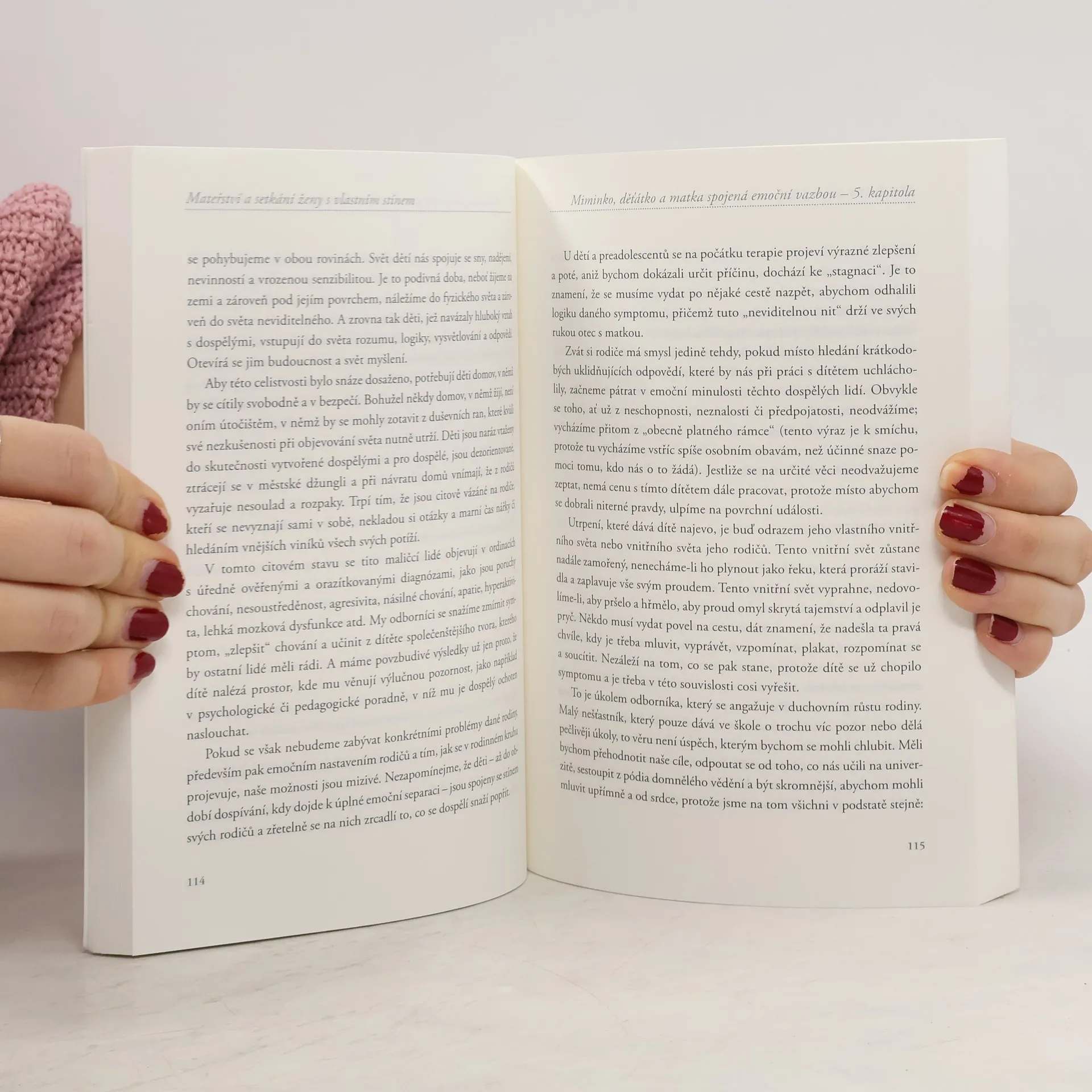 Tato kniha je napsána pro ženy. Je to pozvání, aby se na chvíli zastavily a přemýšlely o roli matky se všemi jejími světly i stíny, které z ní vyvěrají v podobě emocionálních sopek. Mnoho skrytých aspektů ženské psýché se probouzí k životu právě s příchodem dětí. Je-li žena ochotna to prožít a najde-li pomoc a oporu, aby se tomu vystavila, mohou to pro ni být okamžiky prozření a mystických zkušeností. Je to také příležitost přehodnotit některé předem dané představy a předsudky, které o mateřství, péči o děti, výchově a vztazích s dětmi v naší společnosti panují. Autorka mluví otevřeně o tématech, jež se až dosud zdála neuchopitelná: popisuje stavy změněného vědomí během měsíců následujících po porodu, odkrývá emoční pole, která si ženy vytvářejí s miminkem, i pocity neustálého šílenství, když samy sebe nepoznávají… Cílem knihy je vytvořit prostor upřímného setkávání mezi ženami a usnadnit jim vzájemné sdílení, komunikaci i solidaritu.