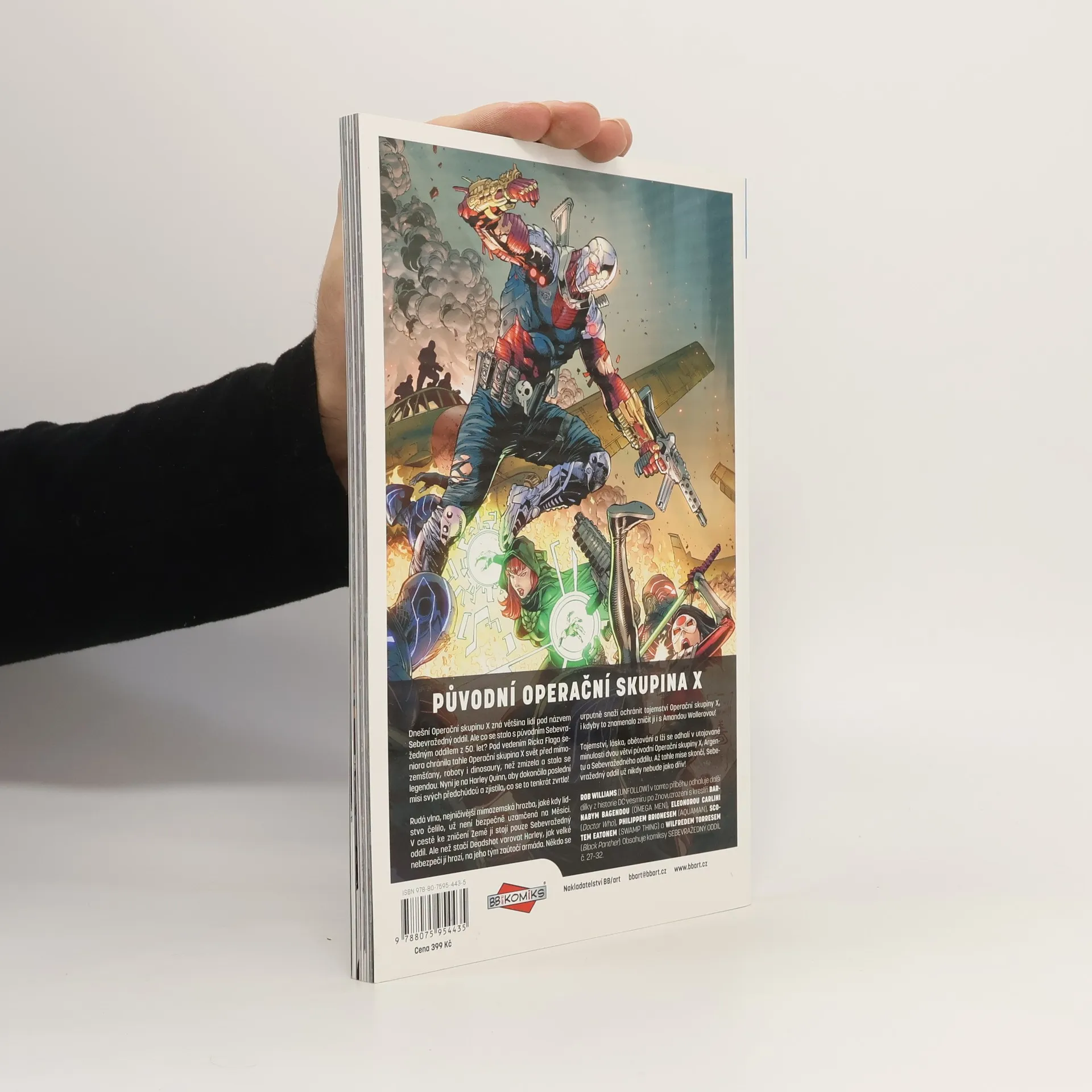 Dnešní Operační skupinu X zná většina lidí pod názvem Sebevražedný oddíl. Ale co se stalo s původním Sebevražedným oddílem z 50. let? Pod vedením Ricka Flaga seniora chránila tahle Operační skupina X svět před mimozemšťany, roboty i dinosaury, než zmizela a stala se legendou. Nyní je na Harley Quinn, aby dokončila poslední misi svých předchůdců a zjistila, co se to tenkrát zvrtlo! Rudá vlna, nejničivější mimozemská hrozba, jaké kdy lidstvo čelilo, už není bezpečně uzamčená na Měsíci. V cestě ke zničení Země jí stojí pouze Sebevražedný oddíl. Ale než stačí Deadshot varovat Harley, jak velké nebezpečí jí hrozí, na jeho tým zaútočí armáda. Někdo se urputně snaží ochránit tajemství Operační skupiny X, i kdyby to znamenalo zničit ji i s Amandou Wallerovou! ROB WILLIAMS (UNFOLLOW) v tomto velkolepém příběhu odhaluje další dílky z historie DC vesmíru po Znovuzrození s kreslíři BARNABYM BAGENDOU (OMEGA MEN), ELEONOROU CARLINI (Doctor Who), PHILIPPEM BRIONESEM (AQUAMAN), SCOTEM EATONEM (SWAMP THING) a WILFREDEM TORRESEM (Black Panther). Obsahuje komiksy SEBEVRAŽEDNÝ ODDÍL č. 27–32.