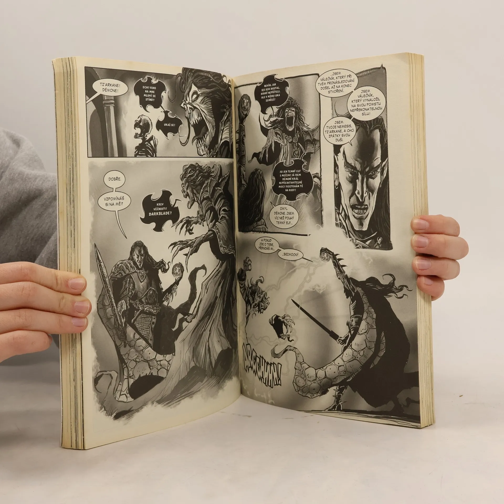 V mrazivých končinách Naggarothu sídlí bojovná rasa temných elfů. Tito zlovolní tvorové neznají soucit, ohledy ani slitování. Z této proradné rasy ční nade vše jako velký válečník, ale i krutý a sobecký netvor, Malus Darkblade – Temná čepel. Pověsti o obrovském pokladu ukrytém v hluboko v Pustinách Chaosu jsou pro něj příliš velkým pokušením na to, aby je ignoroval, a vydá se jej hledat, aby ještě více rozšířil svou moc a vliv. Netuší, že na něj v Pustinách číhá démon, který s nim má vlastní úmysly. A když se v sázce ocitne jeho duše, nemá příliš na výběr… Tato akcí nabitá komiksová kniha obsahuje všechny komiksy o Malusovi, které doposud vyšly, a je mrazivou exkurzí do krutého světa temných elfů…