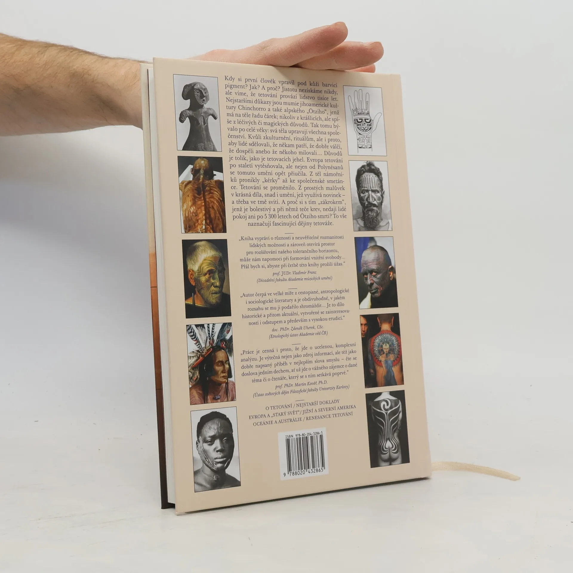 Kdy si první člověk vpravil pod kůži barvící pigment? Jistotu nebudeme mít nikdy, ale každopádně již víme, že tetování provází lidstvo nejméně po dobu 5300 let. Nejstarším důkazem je totiž mumie alpského Ötziho, který má na těle řadu modravých čárek; dost možná nikoliv z krášlících, ale z léčivých či magických důvodů. Lidé tak činili kvůli svému „zkulturnění", z rituálních důvodů, ale i proto, aby jiným sdělovali, že někam patří, že dobře válčí, že dospěli anebo že někoho milovali natolik, že si jej vepsali nejen do srdce, ale i pod kůži... Důvodů je tolik, jako tetovacích jehel celého světa. Evropa po celá staletí vytěsňovala tetování ze svého středu, ale nejen od původních Polynésanů – ano, na lících zdobených Maorů či Markézanů! – se tomuto umění opět přiučila. Z těl námořníků, cirkusáků a kriminálníků, osob z okraje společnosti, pak „kérky" pozvolna pronikly až mezi světovou smetánku a nynější celebrity, jež se bez tetování necítí sexy. A proč si s tím „zákrokem", jenž je bolestivý a při němž stále trochu teče krev, nedají lidé pokoj ani po těch 5300 letech? To všechno i za pomocí více než 100 dobových i současných ilustrací, naznačují fascinující dějiny tetováže, které na českém knižním trhu chyběly.