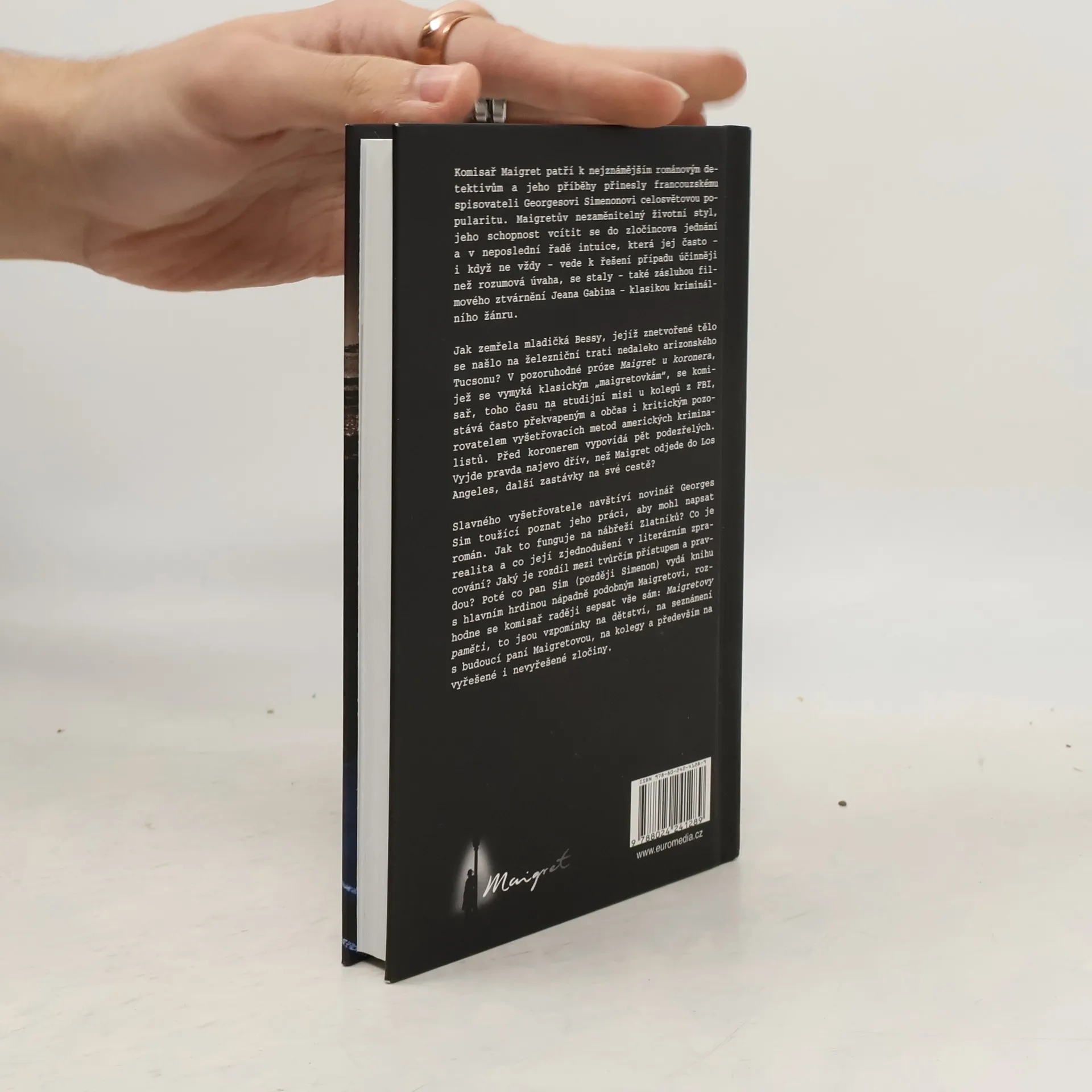 Maigret u koronera – Jak zemřela mladičká Bessy, jejíž znetvořené tělo se našlo na železniční trati nedaleko arizonského Tucsonu? Maigret, toho času na studijní misi u kolegů z FBI, se v této pozoruhodné próze, jež se vymyká klasickým „maigretovkám“, stává často překvapeným a občas i kritickým pozorovatelem vyšetřovacích metod amerických kriminalistů. Před koronerem vypovídá pět podezřelých. Vyjde pravda najevo dřív, než Maigret odjede do Los Angeles, další zastávky na jeho cestě? Maigretovy paměti – Slavného vyšetřovatele navštíví novinář Georges Sim toužící poznat jeho práci, aby mohl napsat román. Jak to funguje na nábřeží Zlatníků? Co je realita a co její zjednodušení v literárním zpracování? Jaký je rozdíl mezi tvůrčím přístupem a pravdou? Poté co Georges Sim (později Simenon) vydá knihu s hlavním hrdinou nápadně podobným Maigretovi, rozhodne se komisař raději sepsat své paměti sám: vzpomínky na dětství, na seznámení s budoucí paní Maigretovou, na své kolegy a především na vyřešené i nevyřešené zločiny.