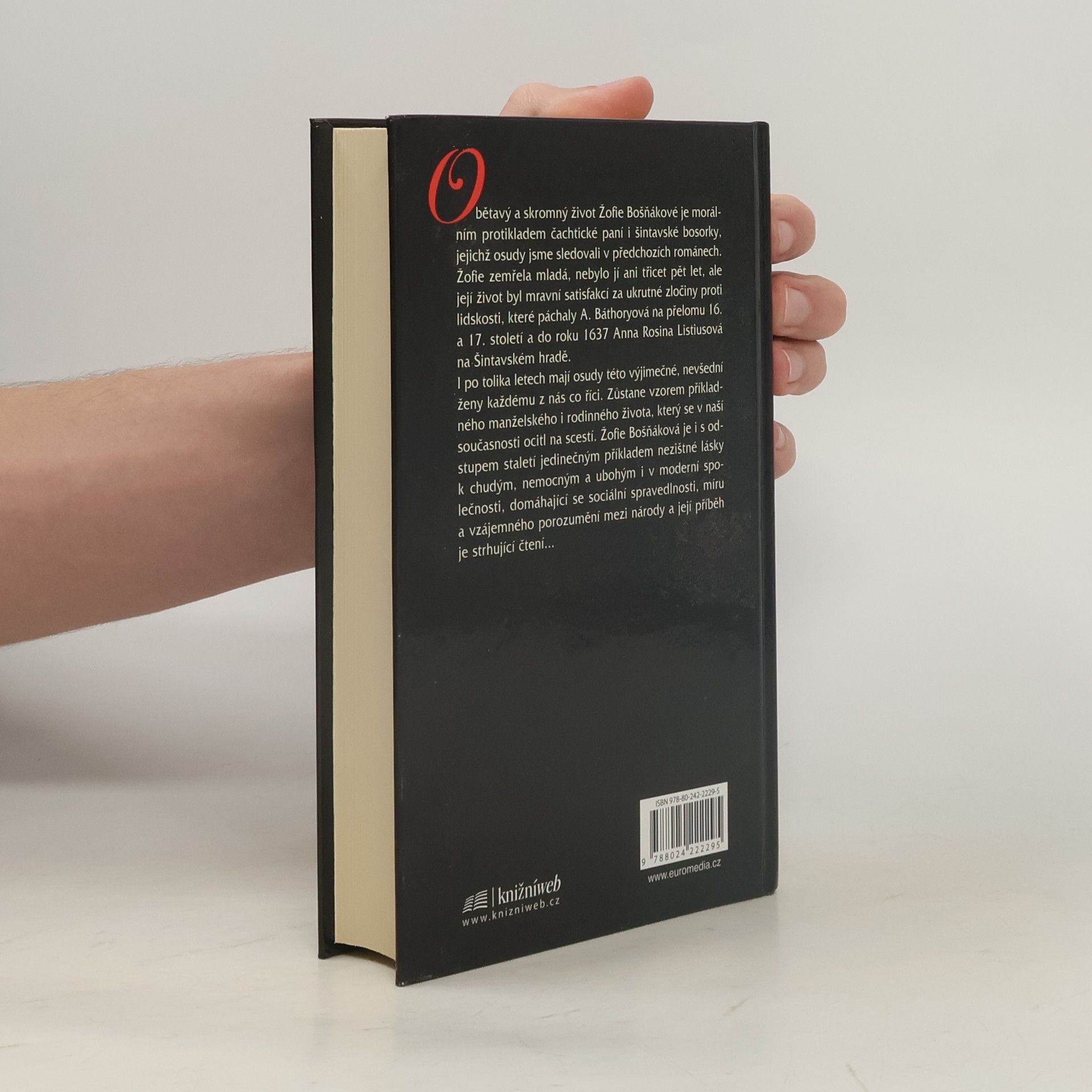 5. díl: Obětavý a skromný život Žofie Bošňákové je morálním protikladem čachtické paní i šintavské bosorky, jejichž osudy jsme sledovali v předchozích románech. Žofie zemřela mladá, nebylo jí ani třicet pět let, ale její život byl mravní satisfakcí za ukrutné zločiny proti lidskosti, které páchaly A. Báthoryová na přelomu 16. a 17. století a do roku 1637 Anna Rosina Listiusová na Šintavském hradě. I po tolika letech mají osudy této výjimečné, nevšední ženy každému z nás co říci. Zůstane vzorem příkladného manželského i rodinného života, který se v naší současnosti ocitl na scestí. Žofie Bošňáková je i s odstupem staletí jedinečným příkladem nezištné lásky k chudým, nemocným a ubohým i v moderní společnosti, domáhající se sociální spravedlnosti, míru a vzájemného porozumění mezi národy a její příběh je strhující čtení...