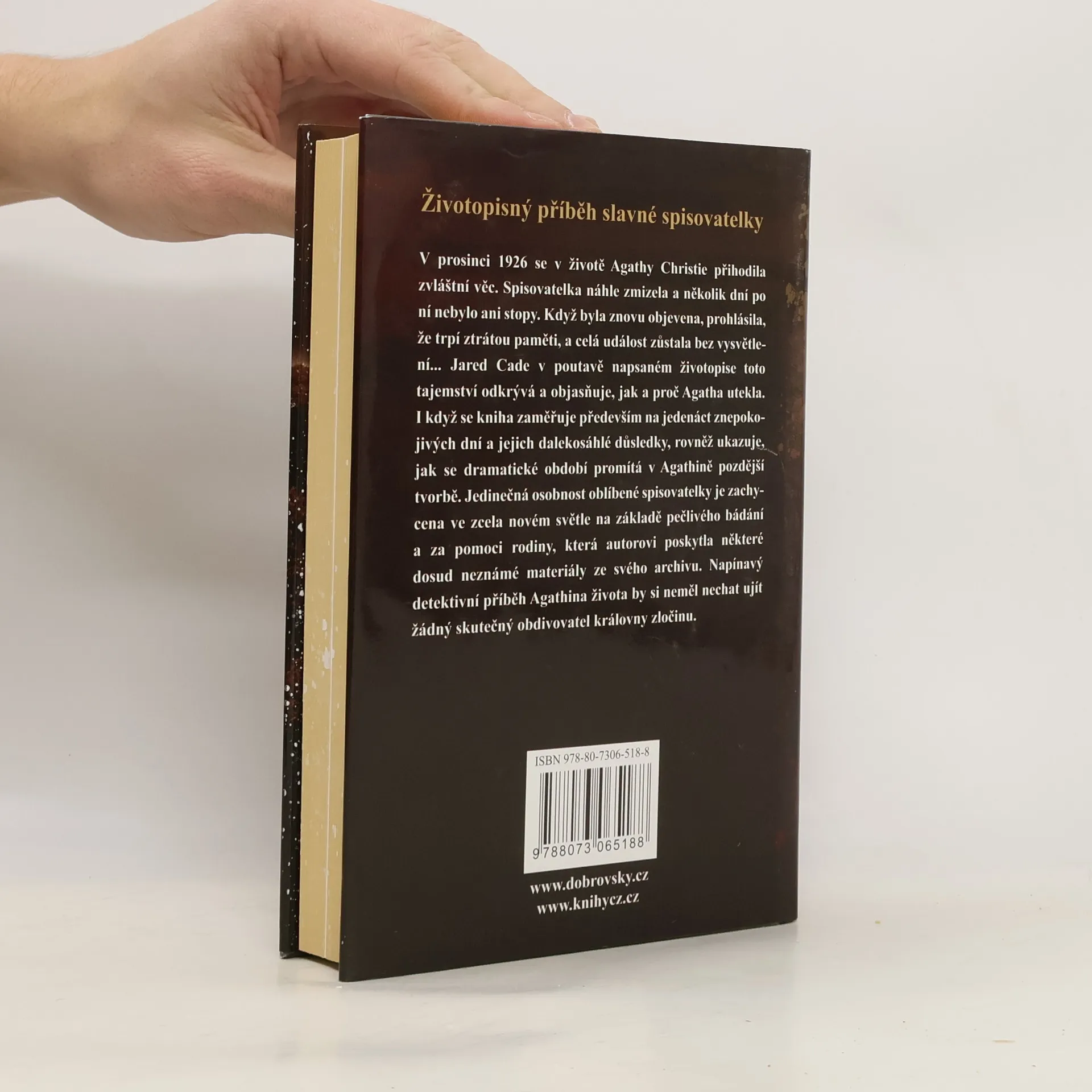 Největší záhadou v životě Agathy Christie bylo její neobjasněné zmizení v prosinci 1926. Když byla proslulá spisovatelka po jedenácti dnech objevena, prohlásila, že trpí ztrátou paměti, a celá událost zůstala nevysvětlena. Jared Cade ve svém poutavě napsaném životopise odkrývá toto tajemství a vysvětluje, jak a proč tehdy Agatha utekla od svého manžela. I když se kniha zaměřuje především na těchto jedenáct znepokojivých dní a jejich dalekosáhlých důsledků, autor ukazuje, jak se promítají i v její pozdější tvorbě. Jedinečná osobnost jedné z nejoblíbenějších autorek současnosti je zachycena ve zcela novém světle na základě poctivého bádání a za pomoci Agathiny rodiny, která mu poskytla některé dosud neznámé materiály ze svého archivu. Je to napínavý detektivní příběh Agathina života, který by si neměl nechat ujít žádný skutečný obdivovatel Královny zločinu. 1. vydání.