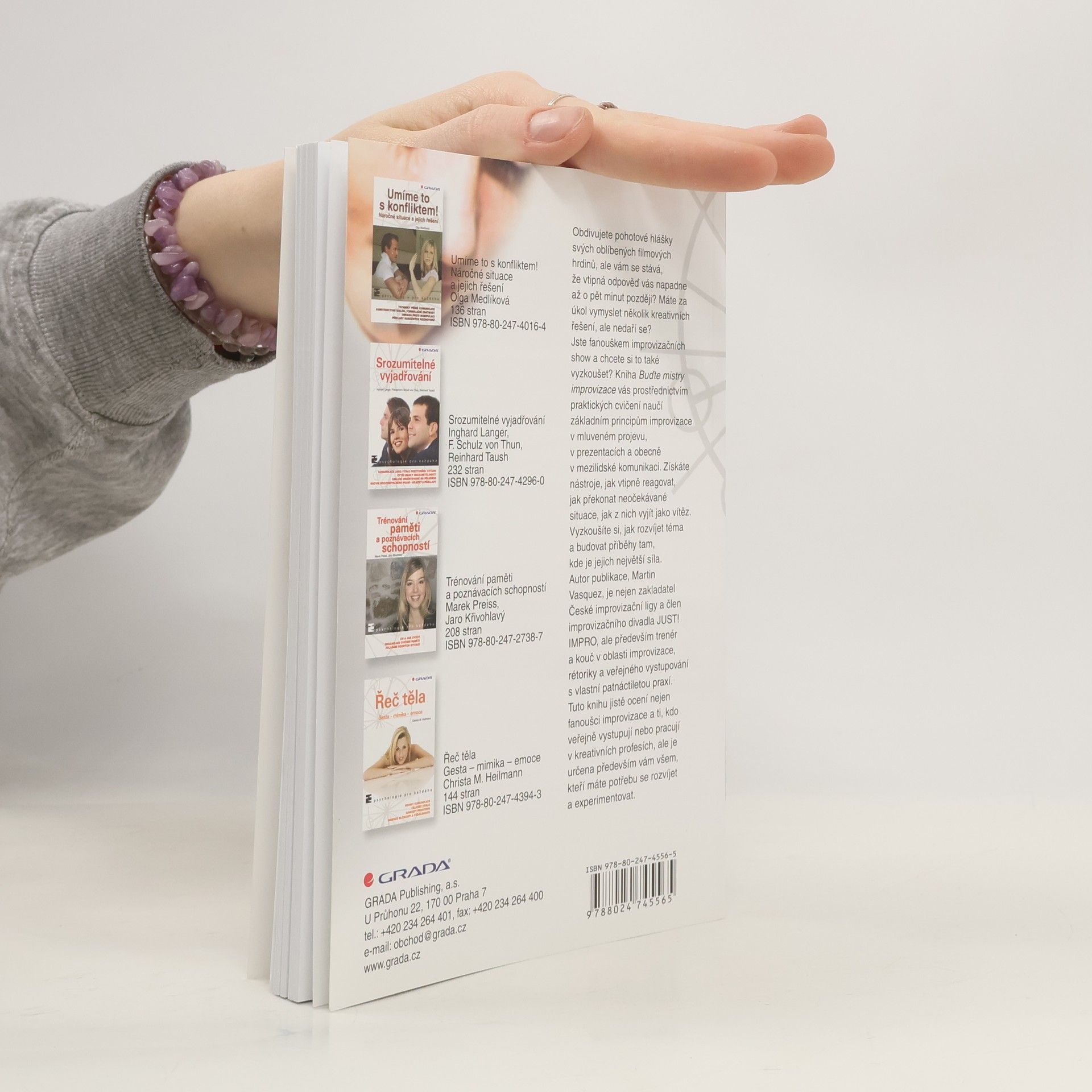 Obdivujete pohotové hlášky svých oblíbených filmových hrdinů, ale vám se stává, že vtipná odpověď vás napadne až o pět minut později? Máte za úkol vymyslet několik kreativních řešení, ale nedaří se? Jste fanouškem improvizačních show a chcete si to také vyzkoušet? Kniha Buďte mistry improvizace vás prostřednictvím praktických cvičení naučí základním principům improvizace v mluveném projevu, v prezentacích a obecně v mezilidské komunikaci. Získáte nástroje, jak vtipně reagovat, jak překonat neočekávané situace, jak z nich vyjít jako vítěz. Vyzkoušíte si, jak rozvíjet téma a budovat příběhy tam, kde je jejich největší síla. Autor publikace, Martin Vasquez, je nejen zakladatel České improvizační ligy a člen improvizačního divadla JUST! IMPRO, ale především trenér a kouč v oblasti improvizace, rétoriky a veřejného vystupování s vlastní patnáctiletou praxí. Tuto knihu jistě ocení nejen fanoušci improvizace a ti, kdo veřejně vystupují nebo pracují v kreativních profesích, ale je určena především vám všem, kteří máte potřebu se rozvíjet a experimentovat.
