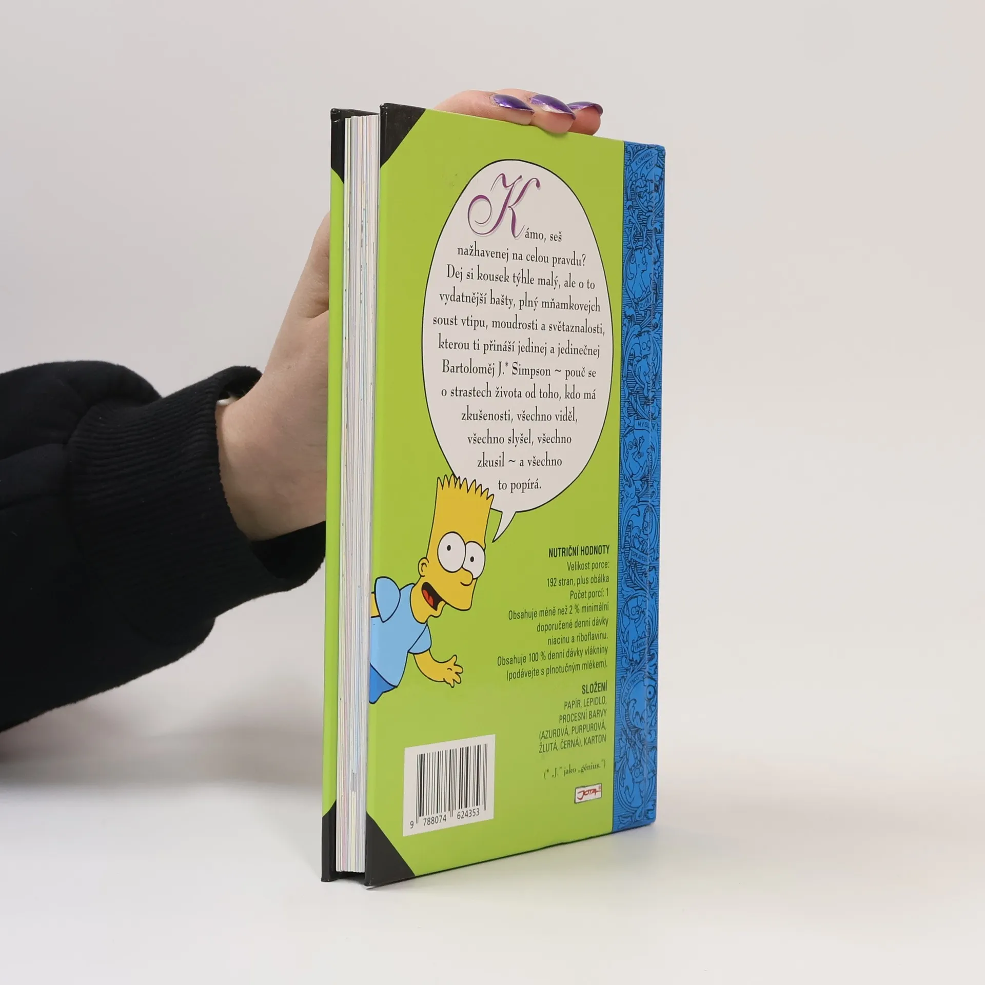 Knížka plná vypečených rad Barta Simpsona pobaví všechny ve věkové kategorii od 10 do 100 let. Nabízí rady a poučení pro všechny situace — potřebujete pro sebe urvat co největší kus večeře? Potřebujete si zpestřit nudné každodenní koupání? Nemáte tušení, jakou hodnotu má ve škole váš oběd? Nevíte, jak sbalit holku? Jak přelstít rodiče, abyste nemuseli v osm do postele? Jak z nich vytáhnout co nejvíc peněz? Jak se stát transkontinentálním výtržníkem? Jaký je opravdový smysl života? Bart Simpson si ví rady v každé situaci a rád se se čtenáři o své zkušenosti podělí.